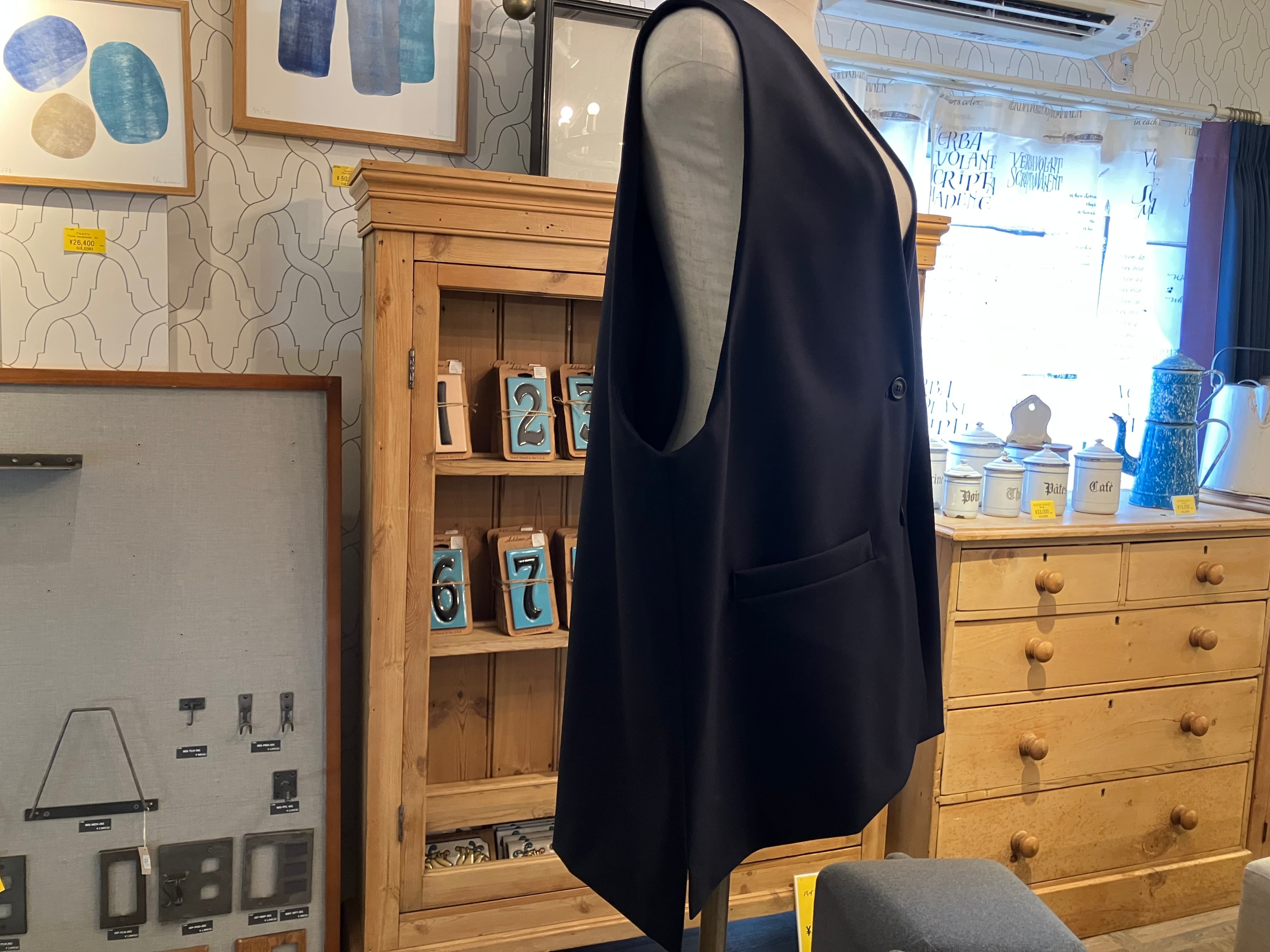 シャープなVネックがポイントのワイドベスト。