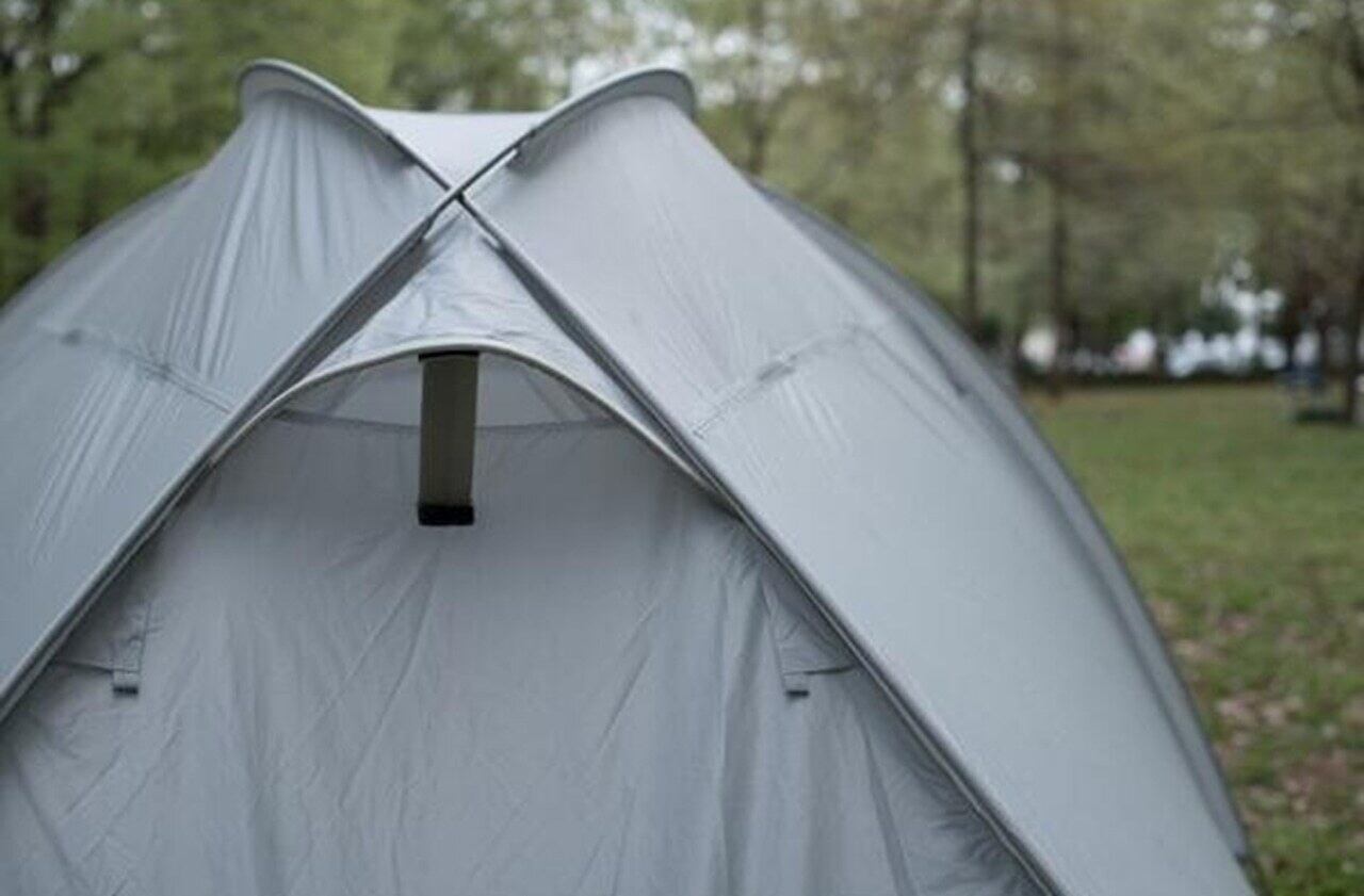 フライシートへのクロスフレーム構造を採用し、フライシートのみで自立します。