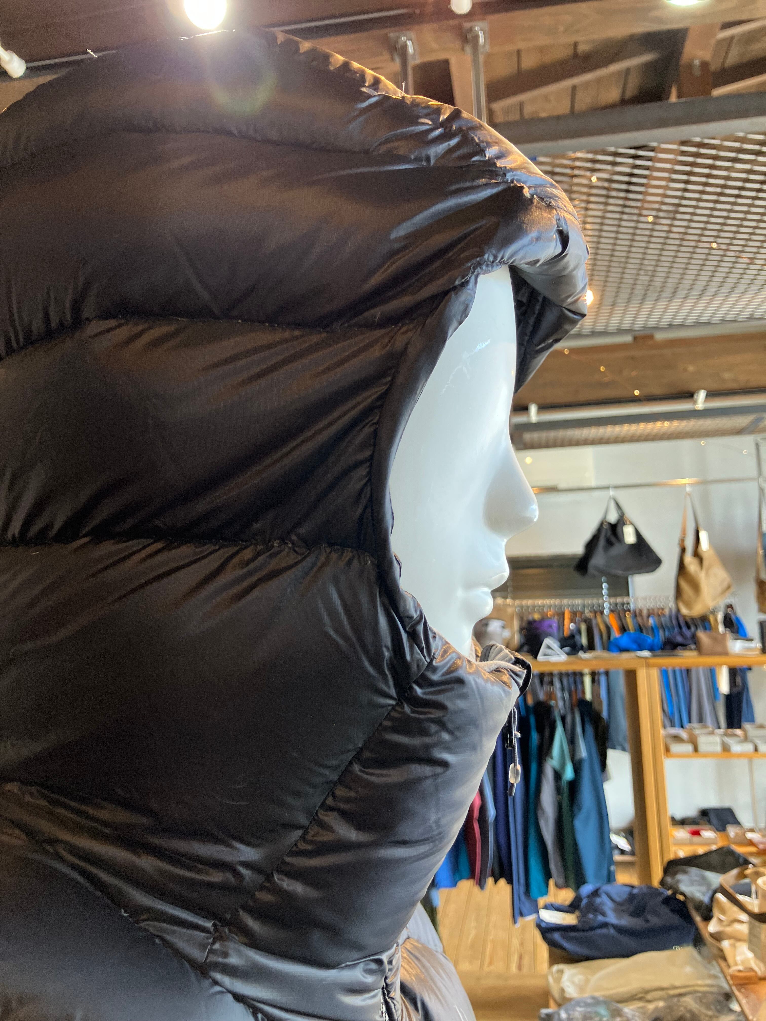 ・ヘルメット対応、ダウン入り、調節可能なフード。