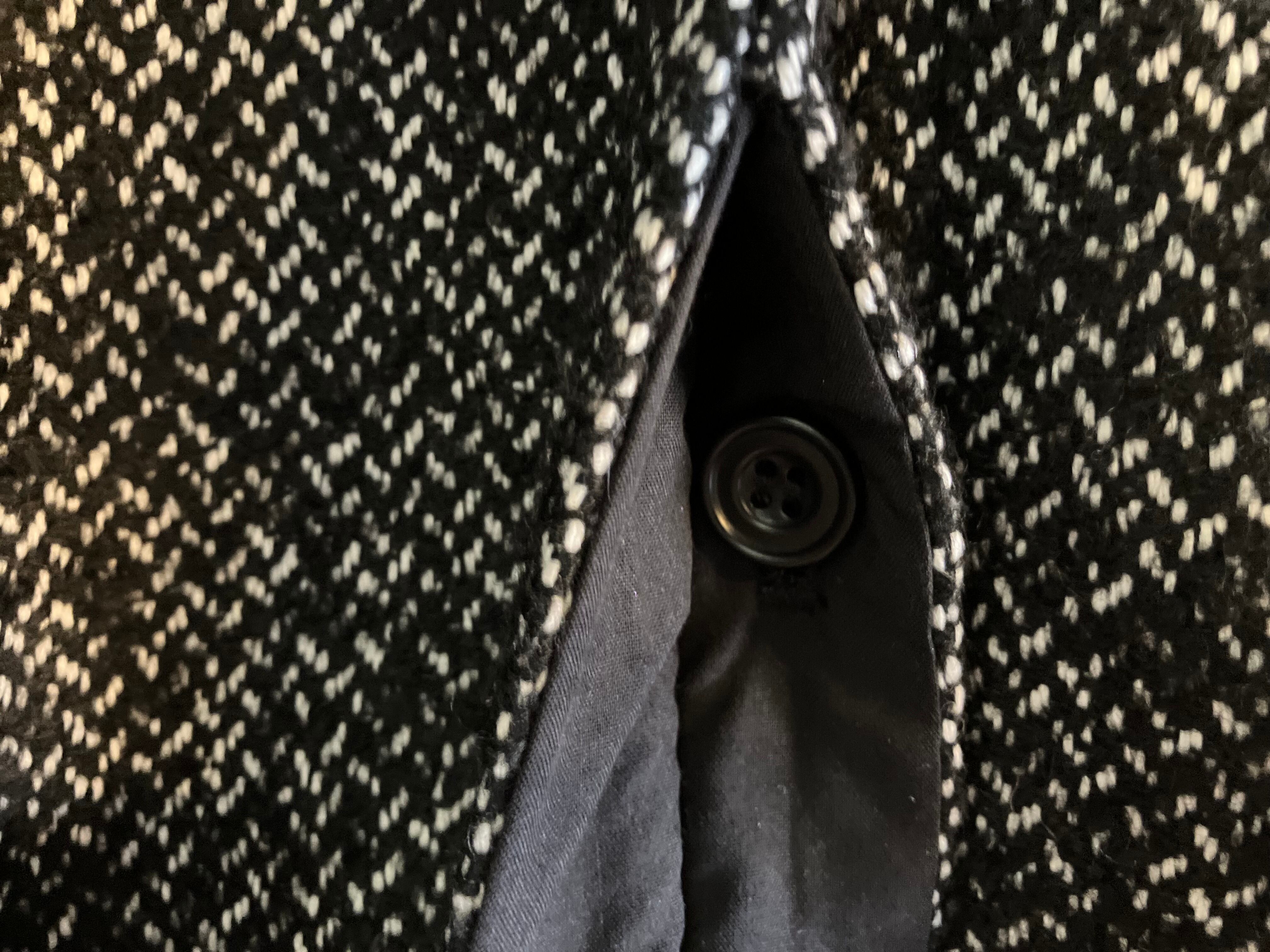 一番上のボタン以外は比翼仕立てですっきりとしたデザインでフラップポケットが際立ちます。