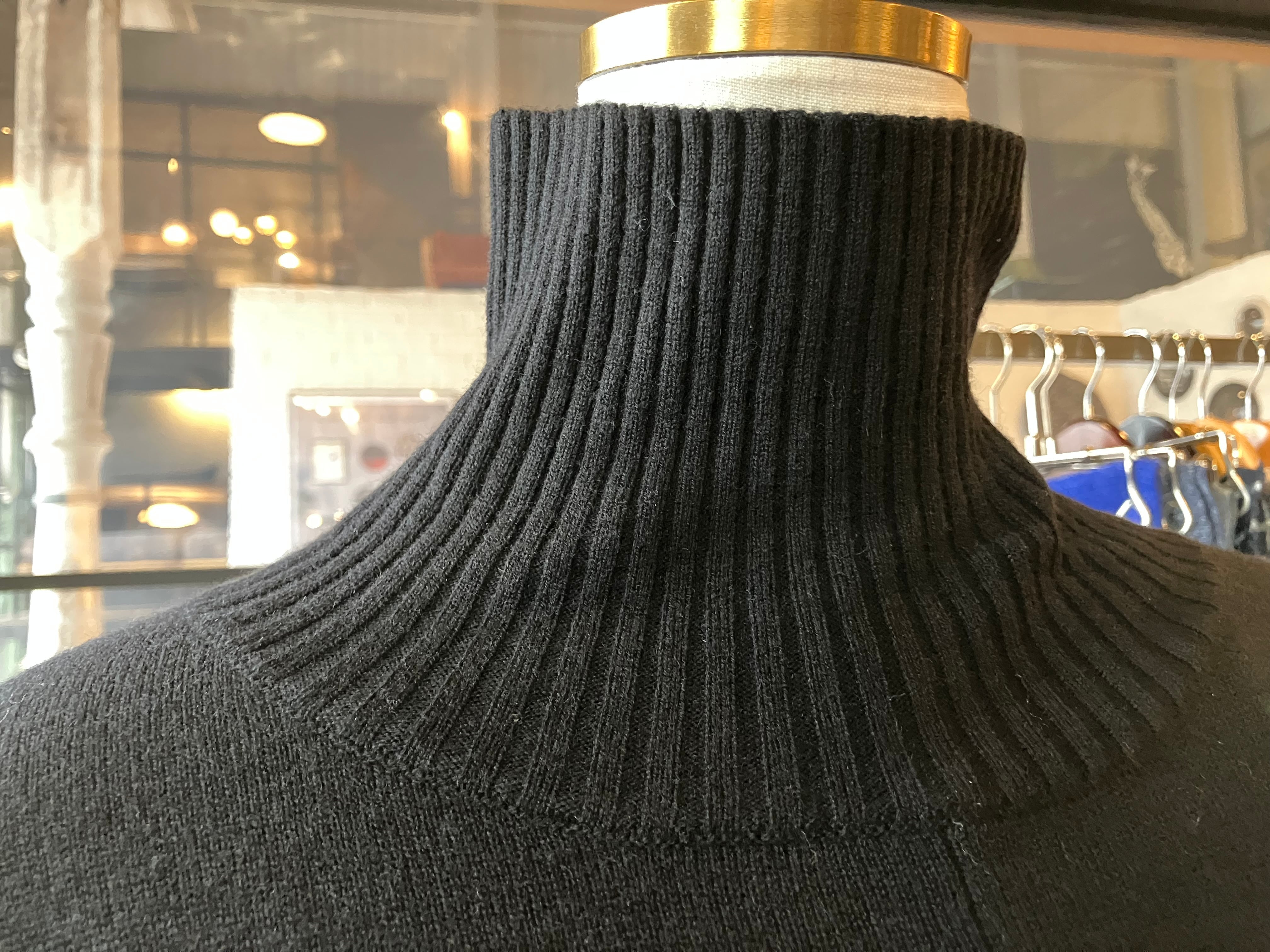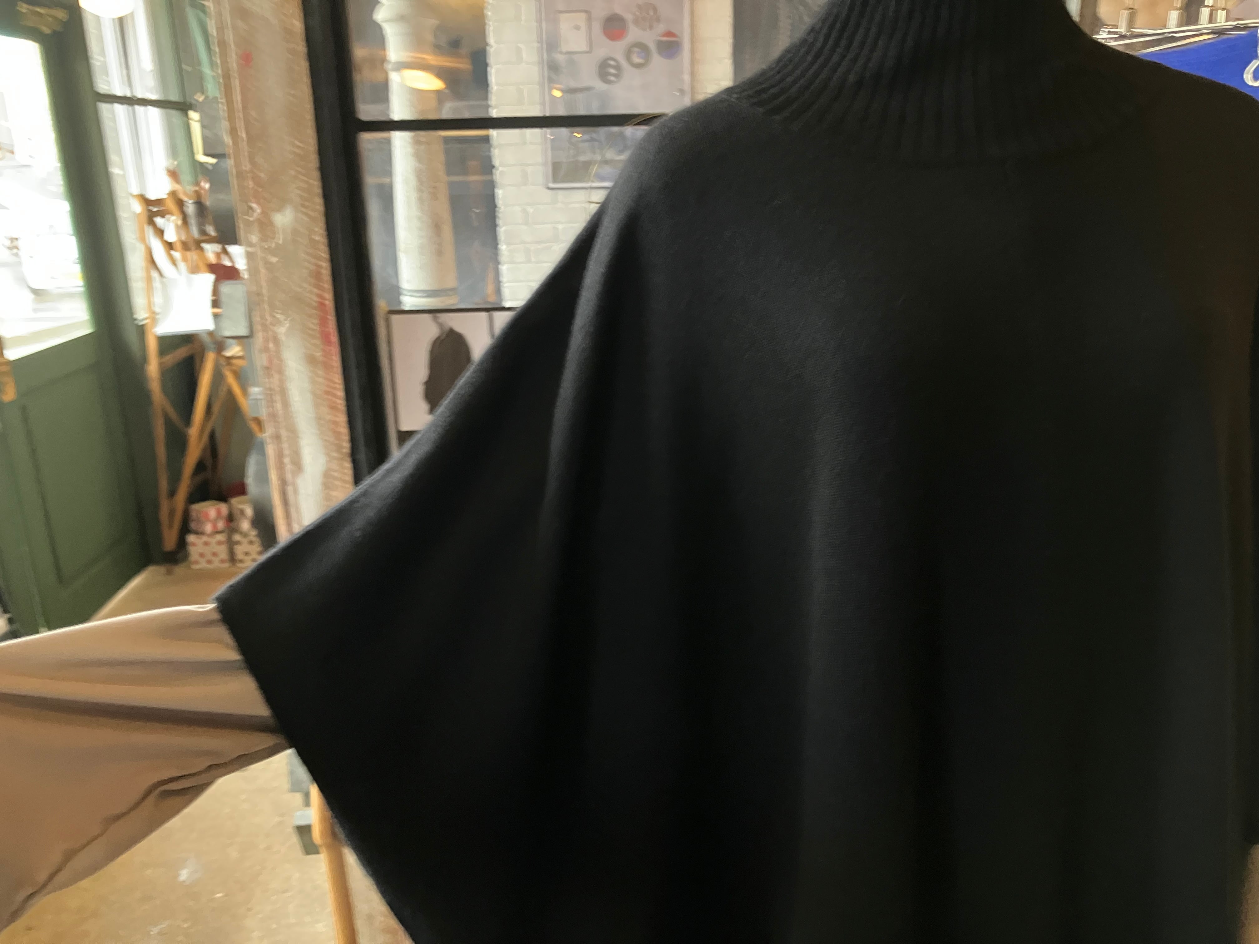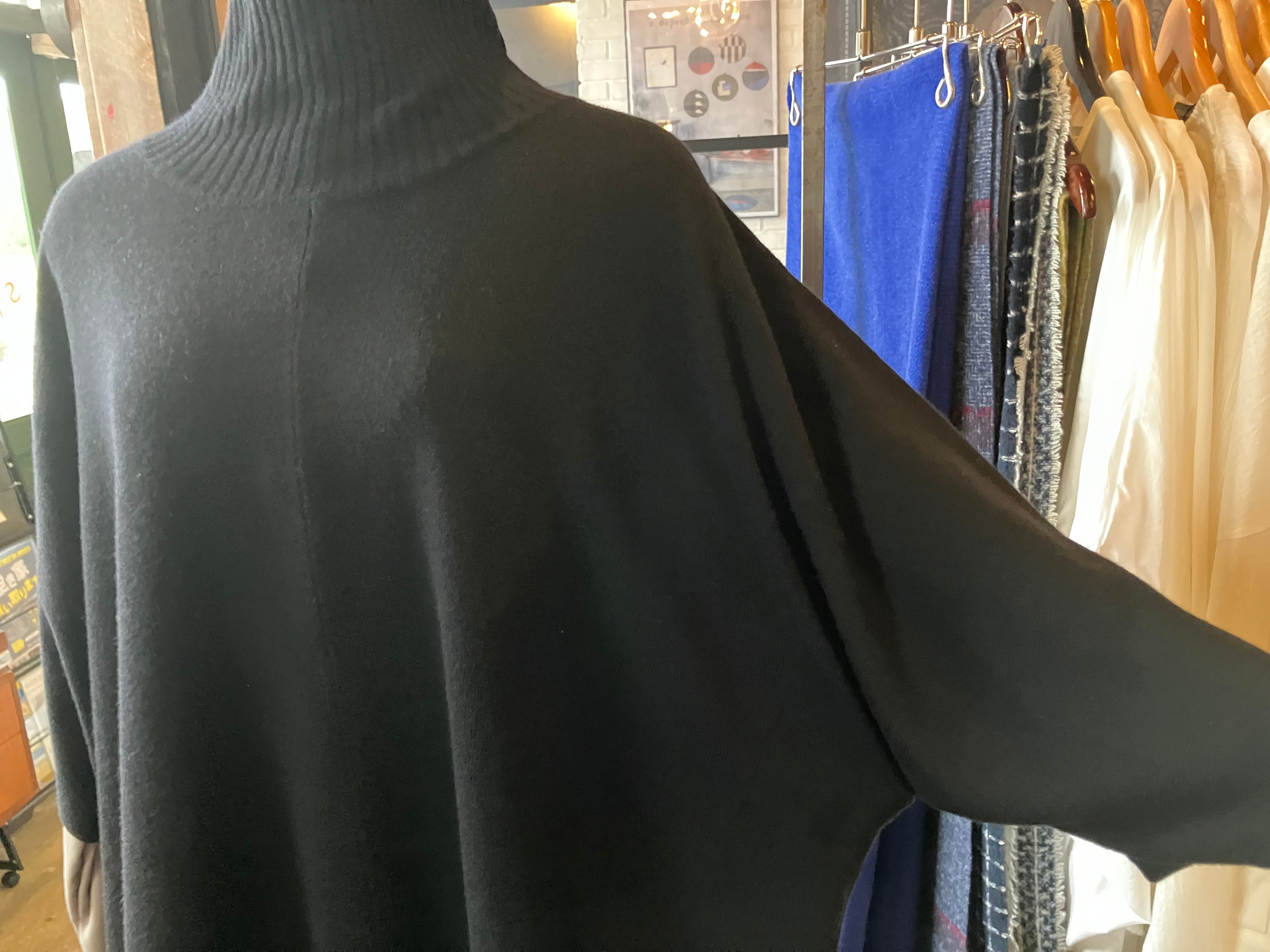 ポンチョ風のカジュアル感と、ハイネックなデザインのバランス感の妙。