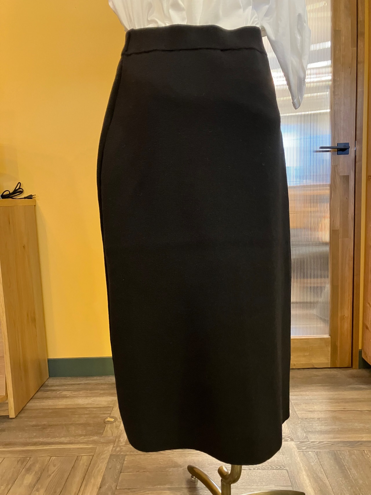 すっきりとしたAラインシルエットが美しい、シンプルさが魅力のミドル丈スカートです。