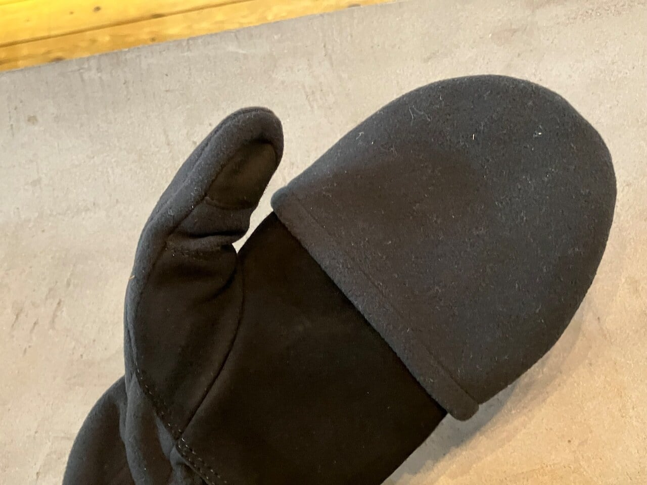 グローブの甲についたカバーを被せ、外気の冷たい空気から指を守ります。