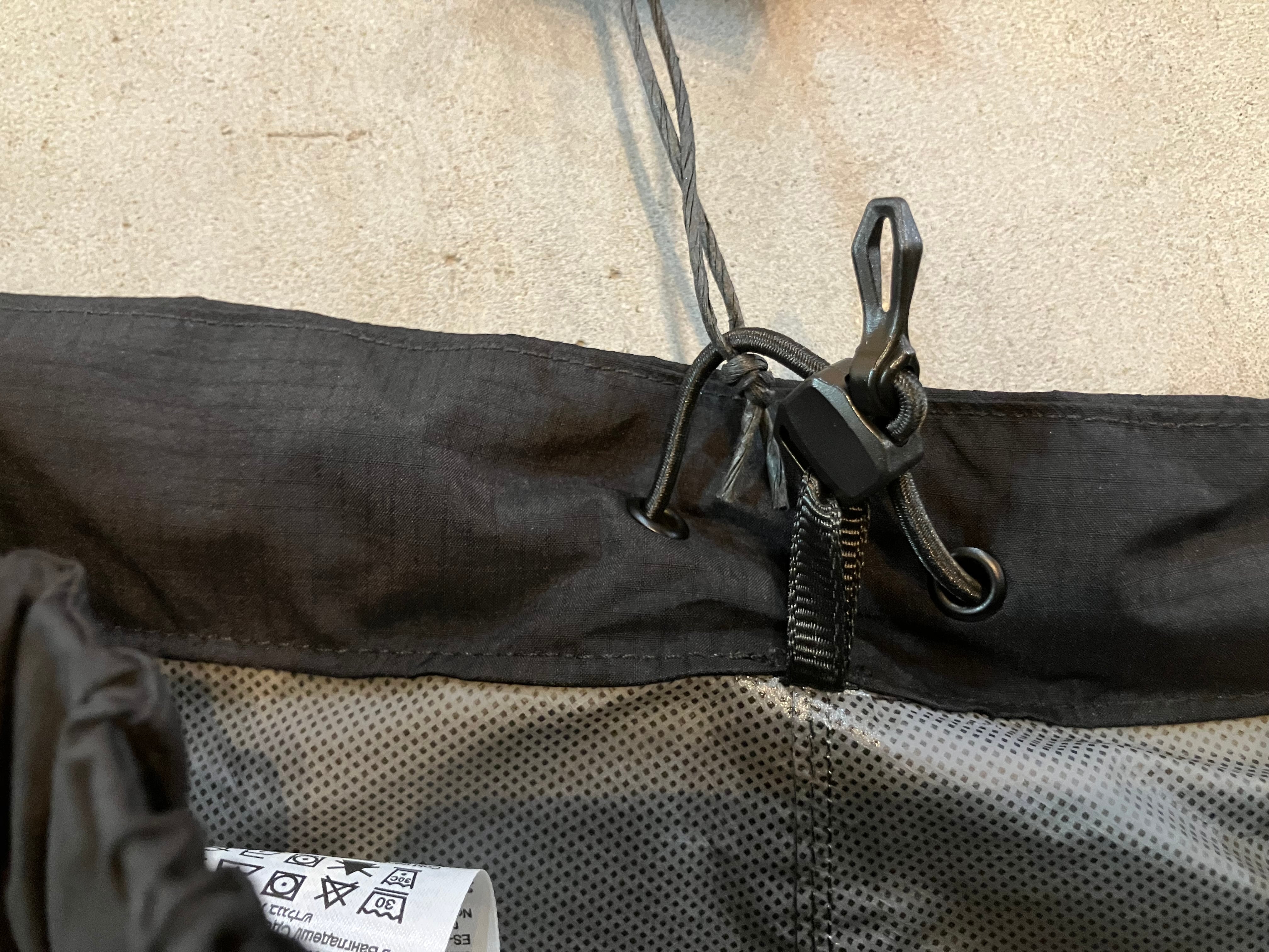 ・ドローコード付きの軽量で部分的に伸縮性のあるウエストバンドにより、ウエスト周りのかさばりを最小限に抑えます。