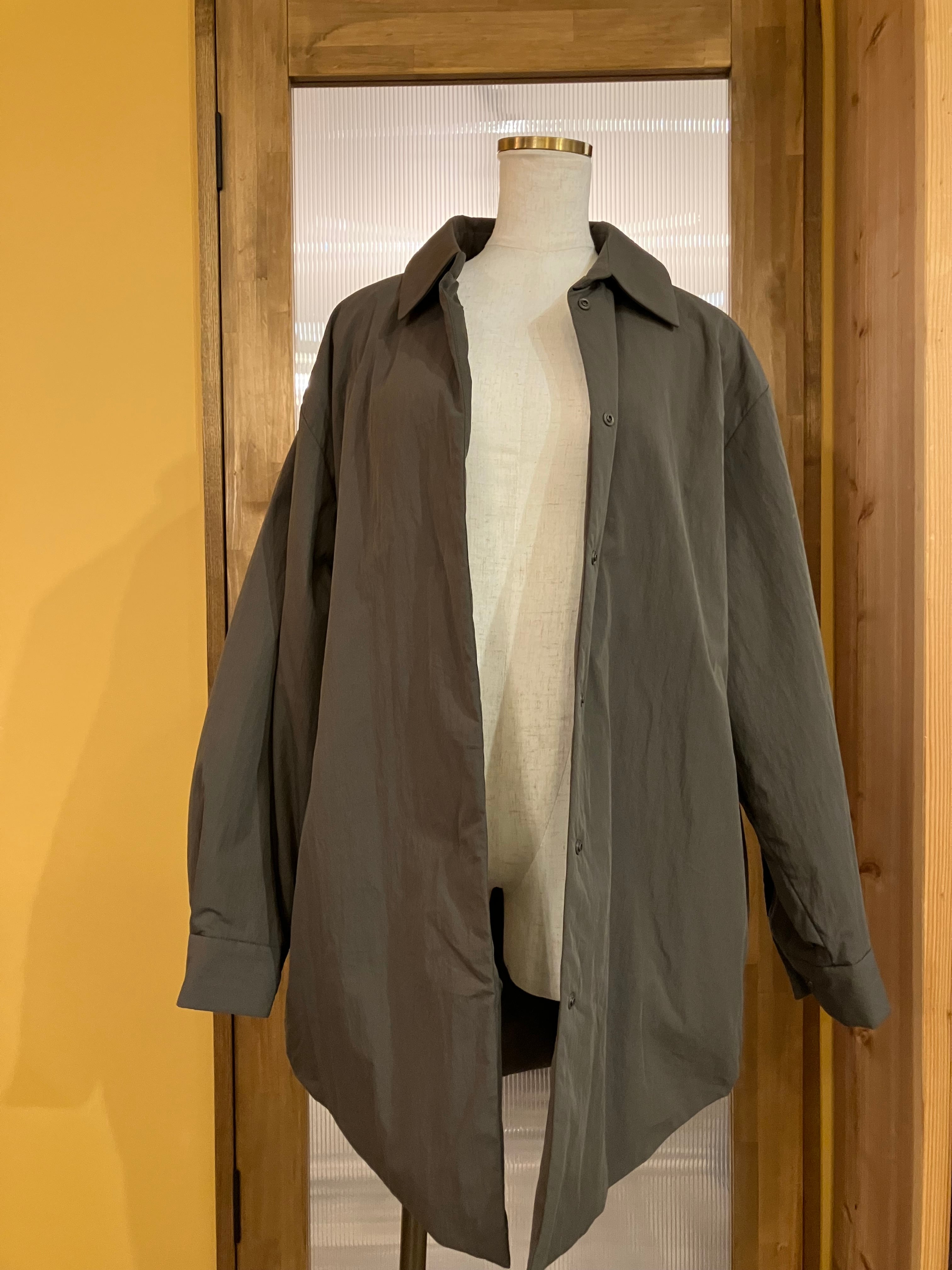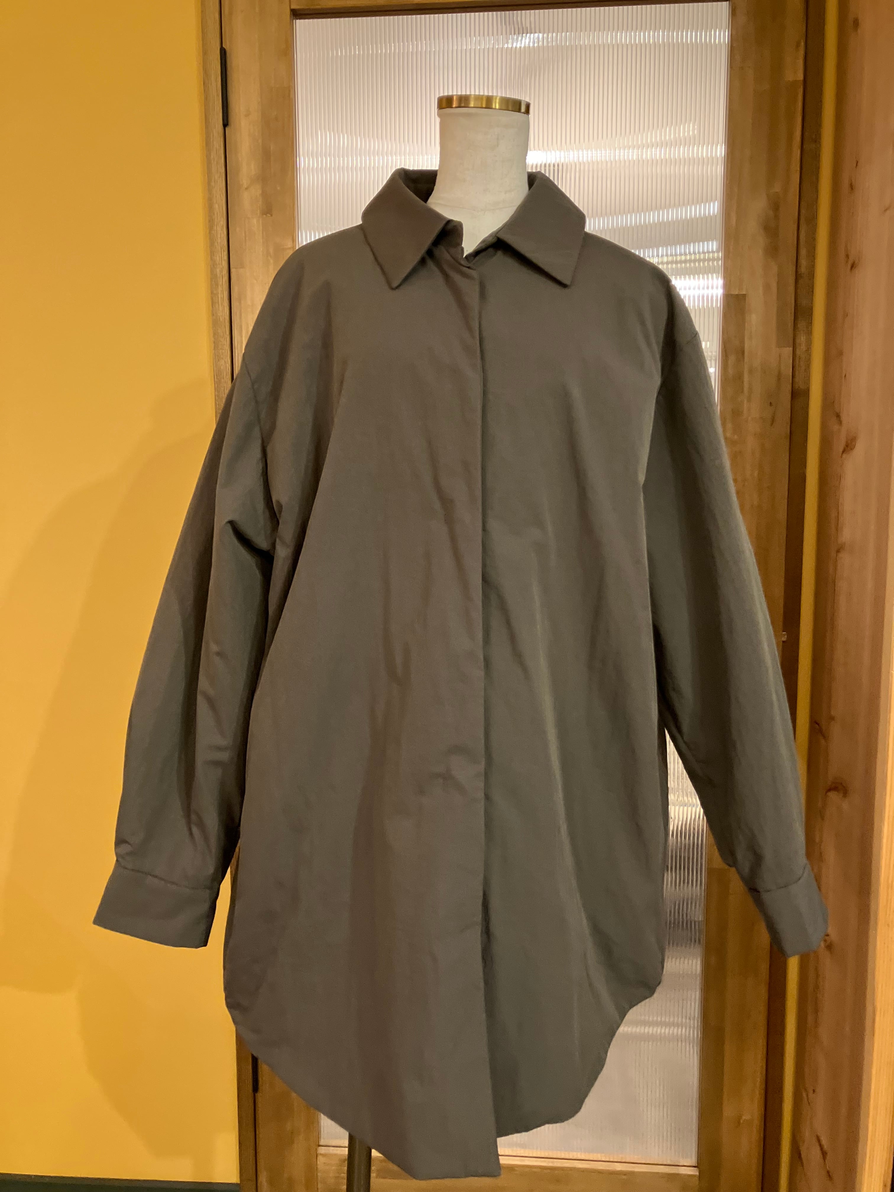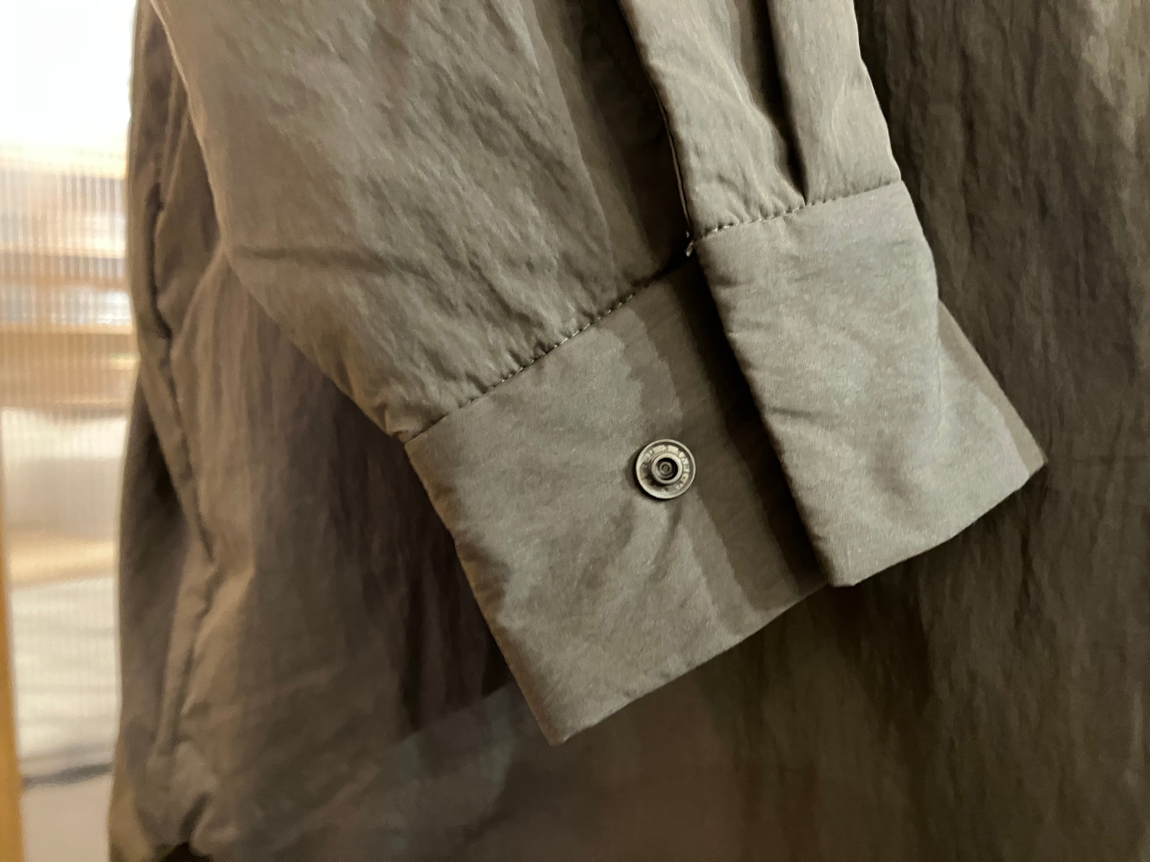 mizuiro indのシャツのシルエットにそのままダウンを入れてシルエットを活かし、大変軽さのあるアウターを表現しました。裾は前後差を付け長すぎない丈感に仕上げています。