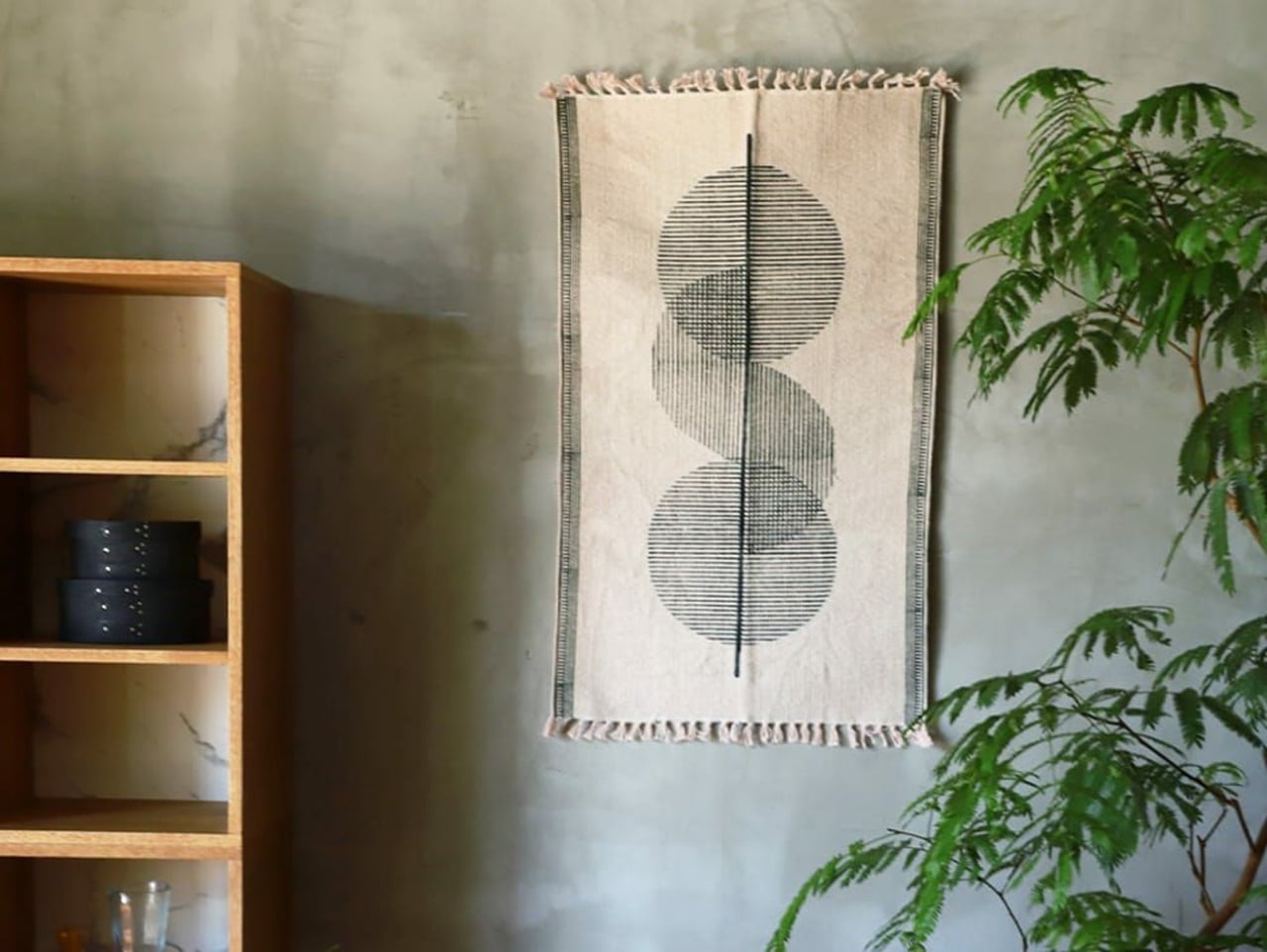 また薄手なのでソファの上に掛けてマルチクロス的な使い方や、アートとして飾るなど自由な発想でお使いいただけます。