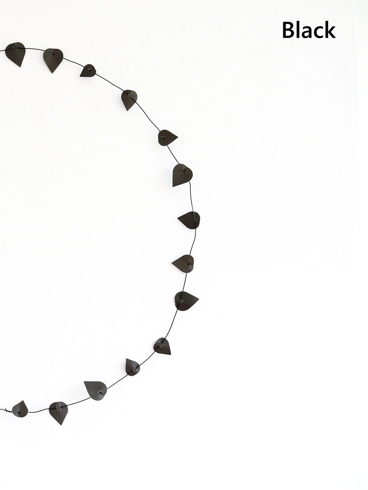 内容のTwigセットをスタイリッシュなリースと長いガーランドに変身させることができます。黒い紙の葉っぱには、あらかじめ穴が開けられており、黒いアルミワイヤーを通すための切り込みが入っています。