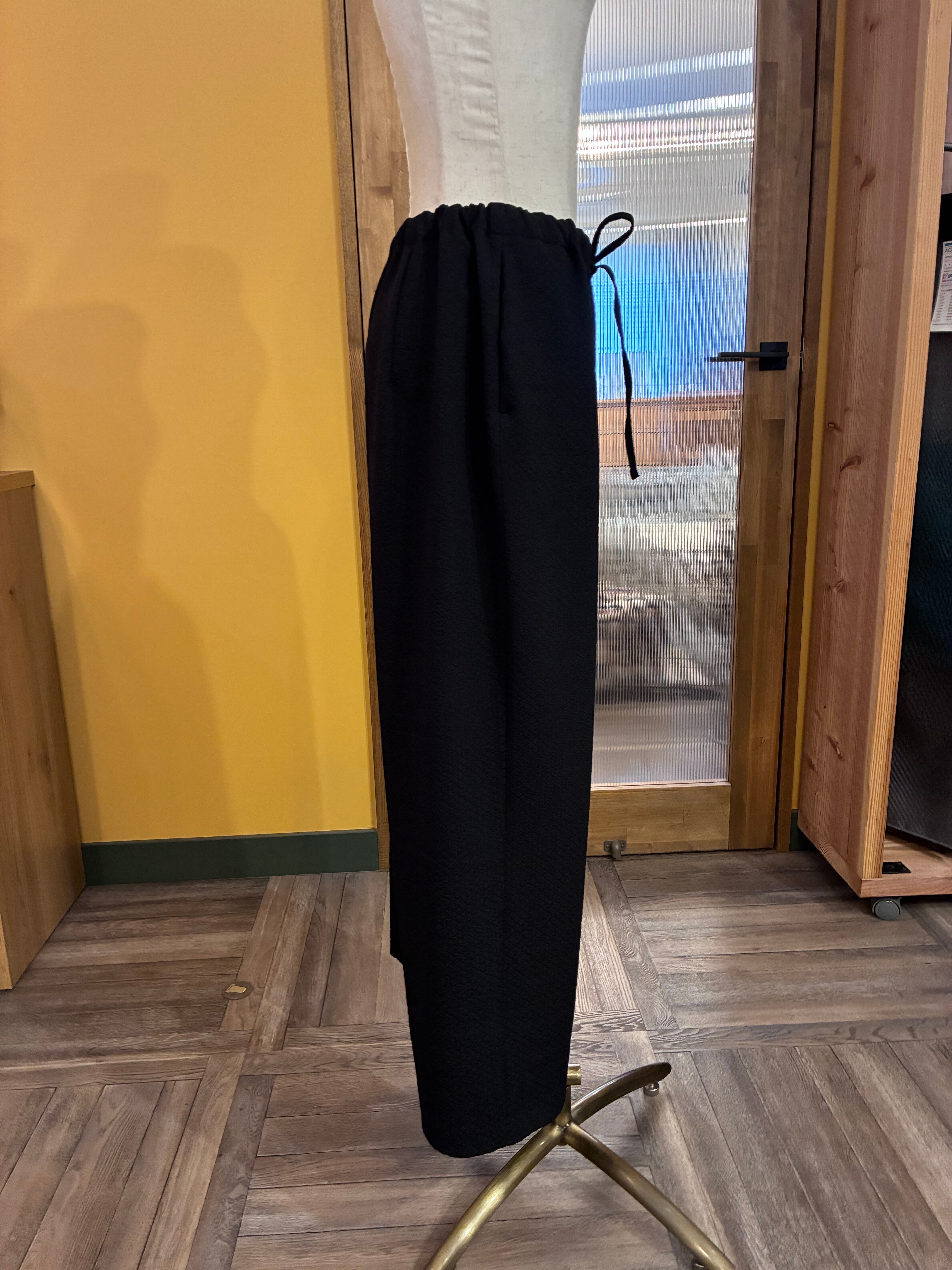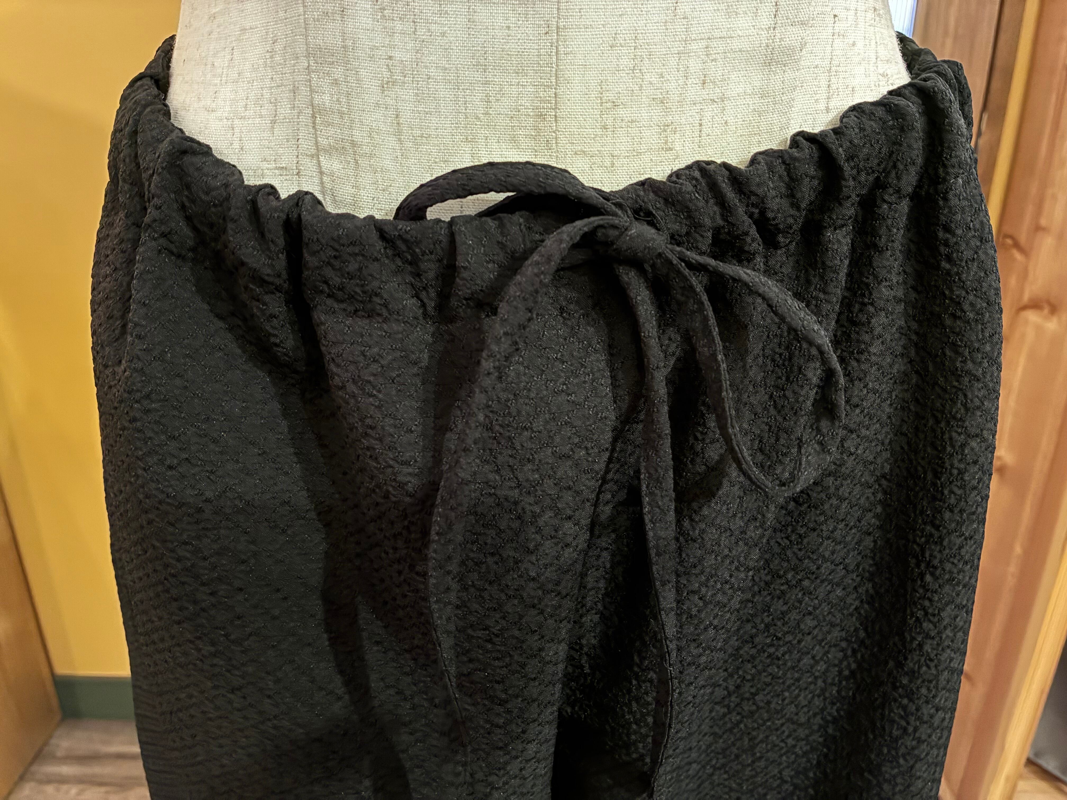 ウエストはゴム仕様でフィット感があり、ドローストリングのリボンがさりげないアクセントとして着こなしにポイントを添えます。