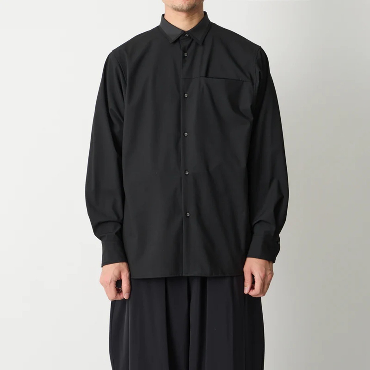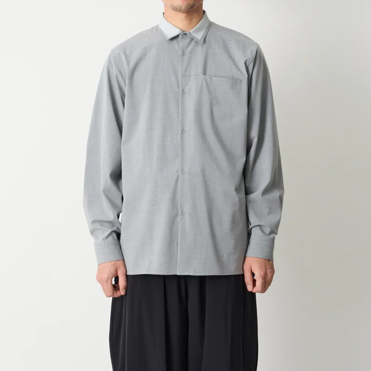2WAYストレッチ素材で製作したボックスシルエットシャツです。