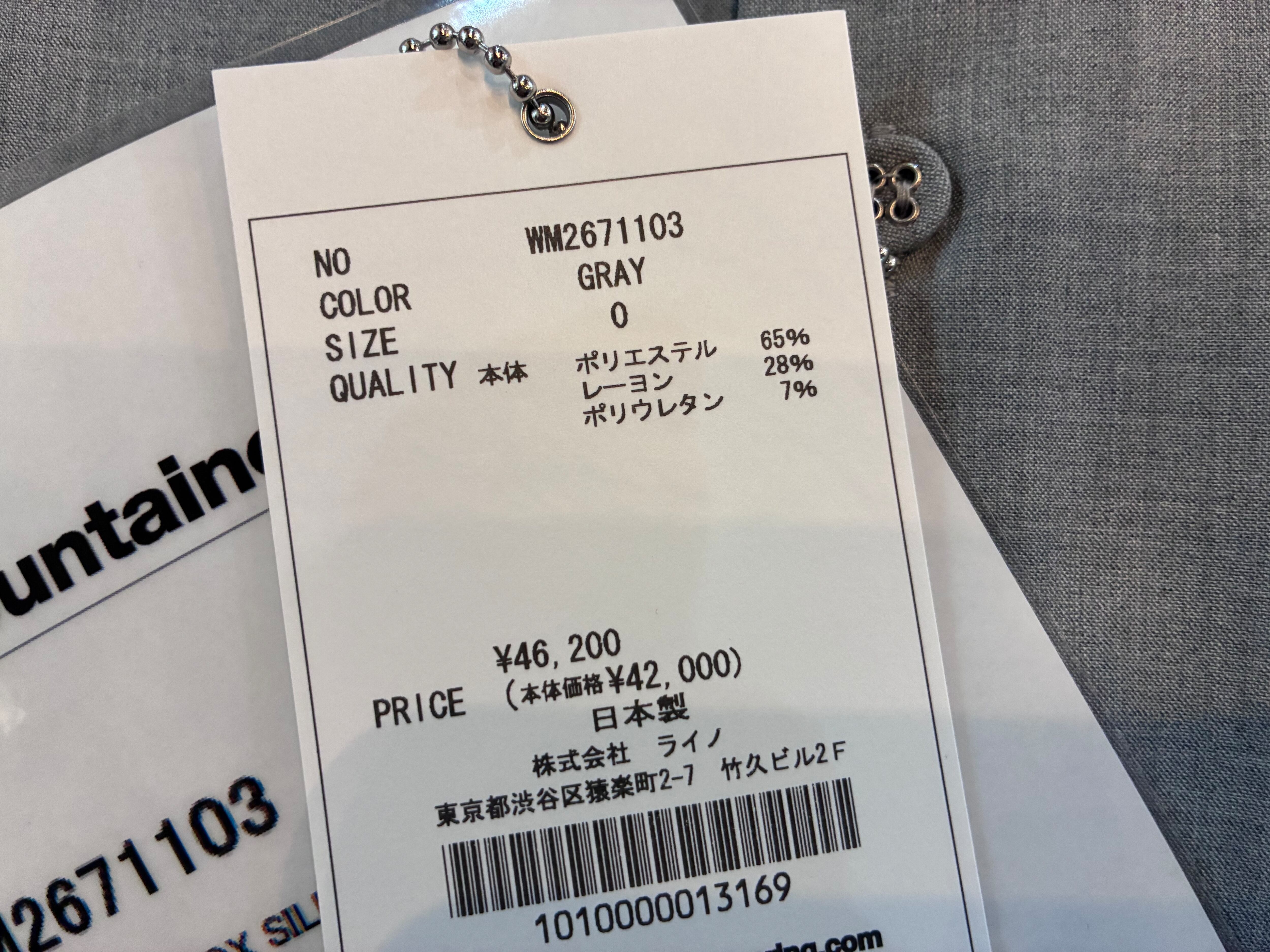サイズ 0:着丈75 / 肩幅44 / バスト115 / 袖丈63.5cm