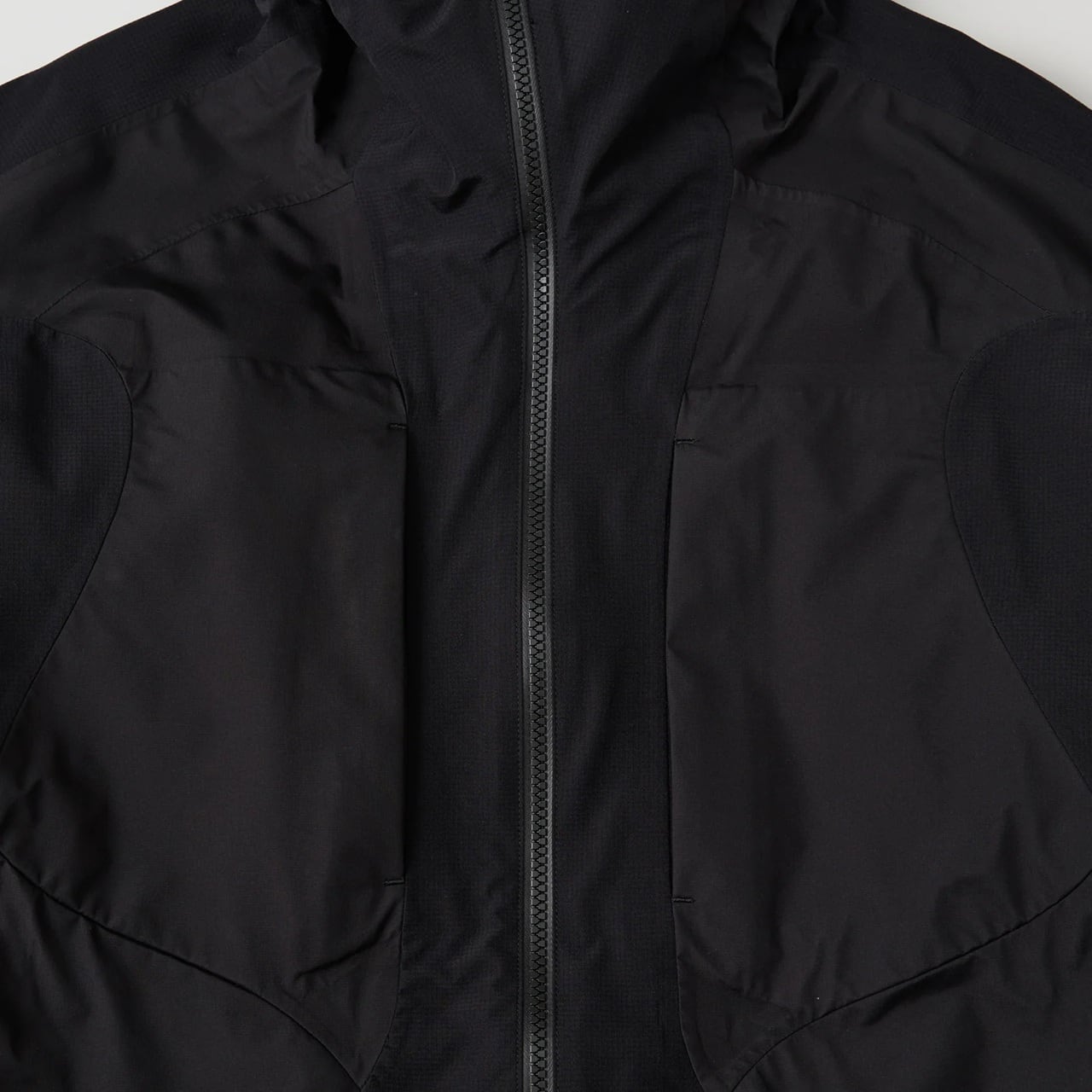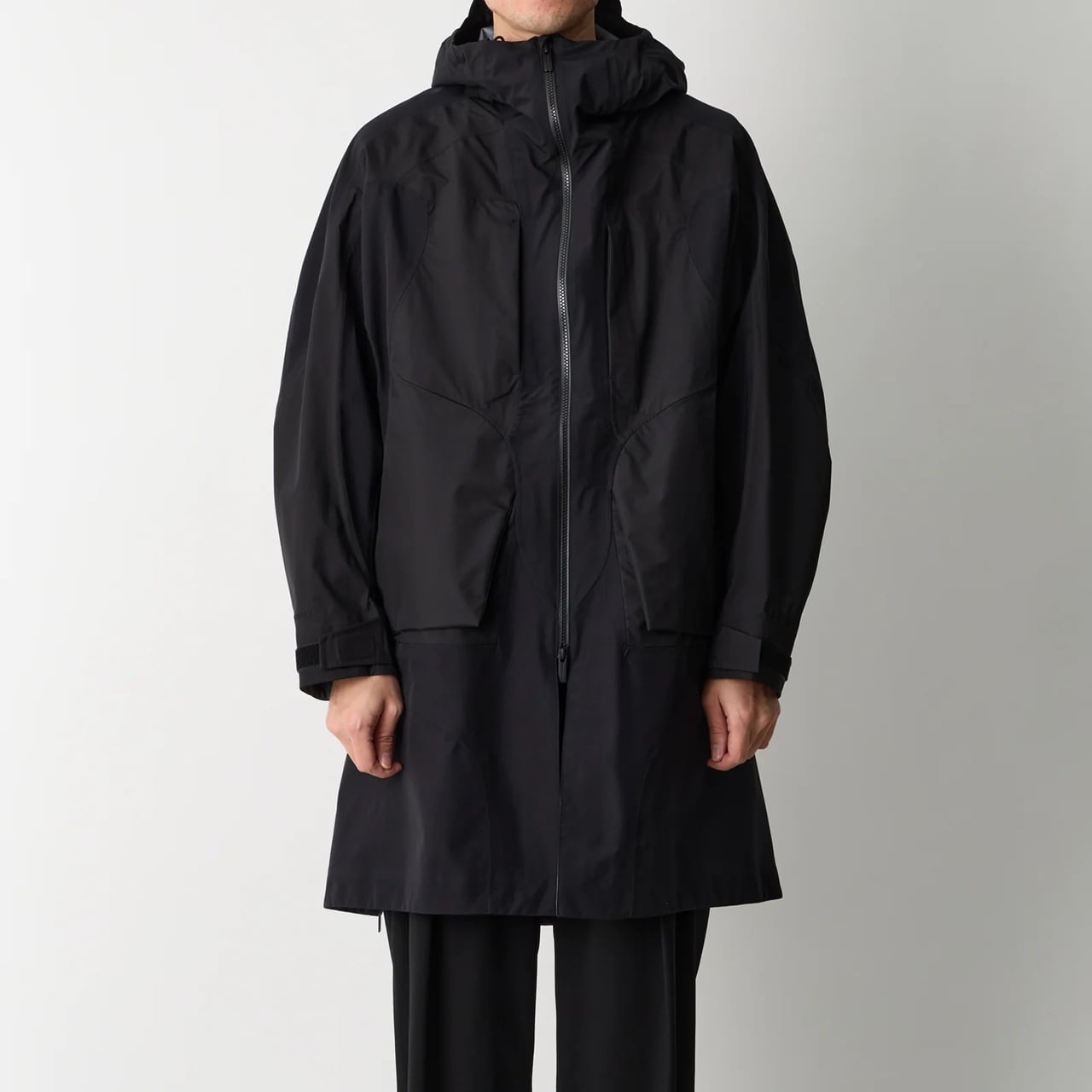 黒のみで構成された、“BLACK LAYER KNOWLEDGE”(黒を重ねる知識)というコンセプトのもと、パターンメイキングとハイスペックな素材の融合により、ソリッドでミニマルなアイテムを製作。