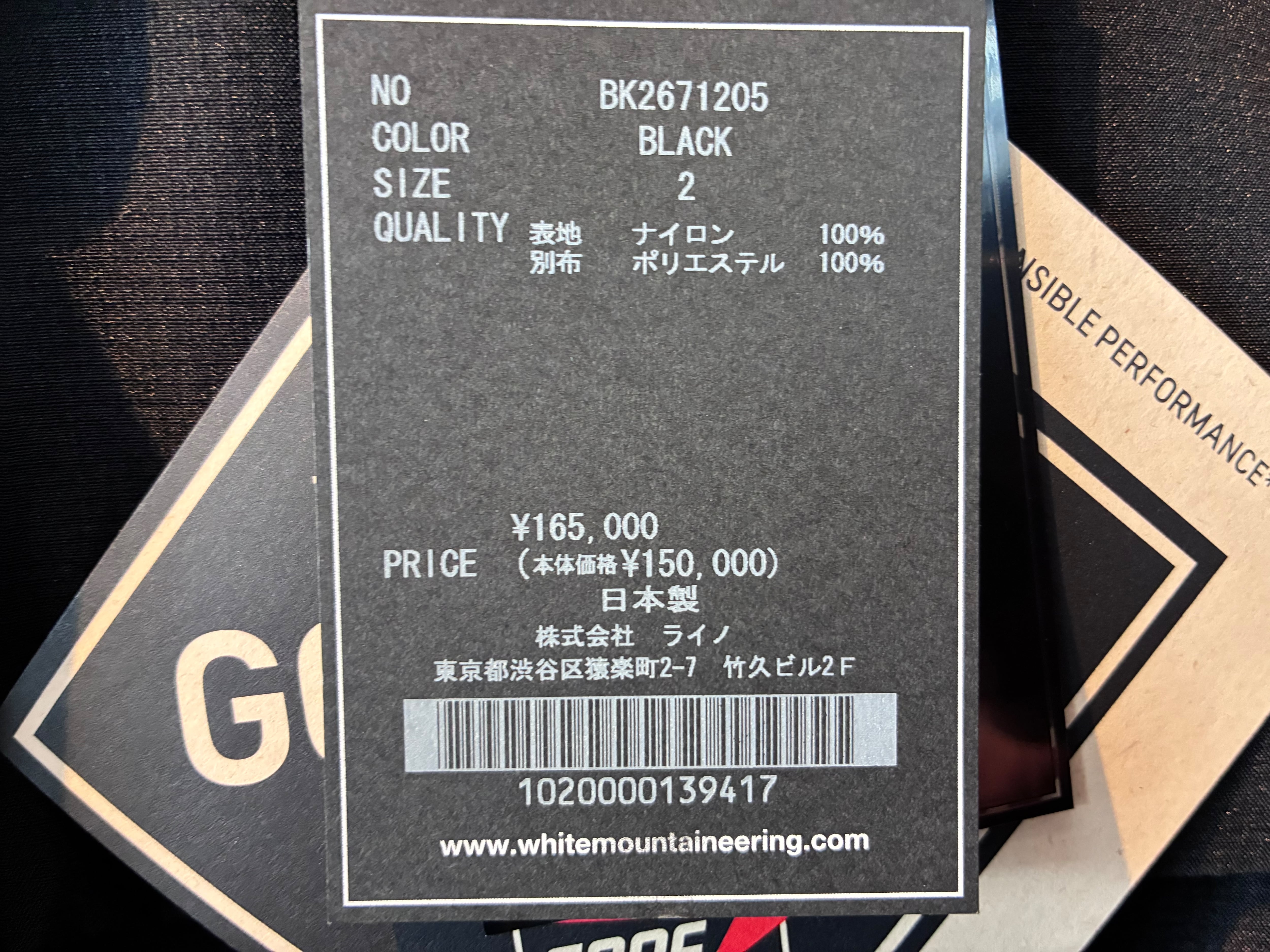 【White Mountaineering / BLK】GORE-TEX HOODED COAT / BK2671205