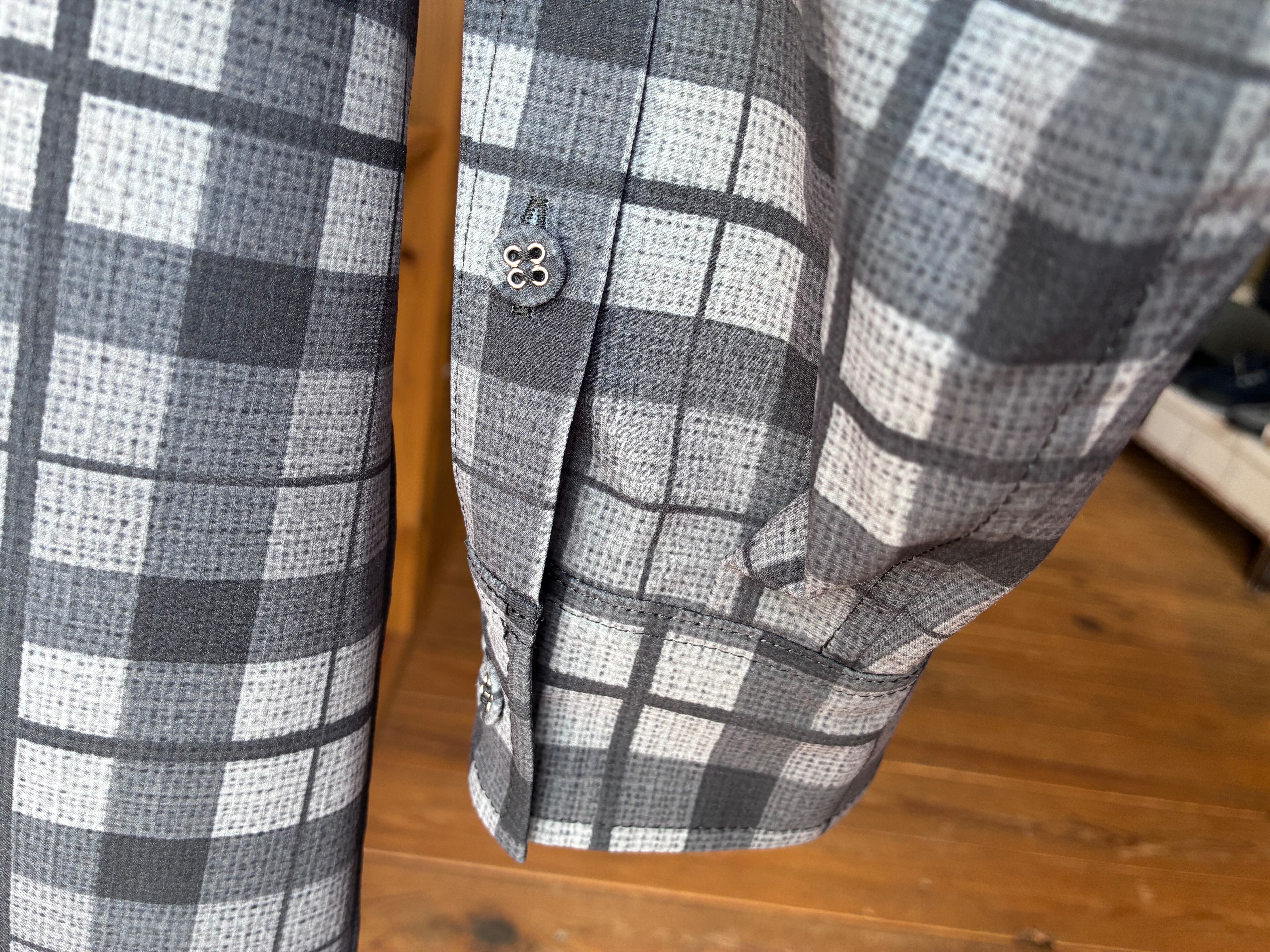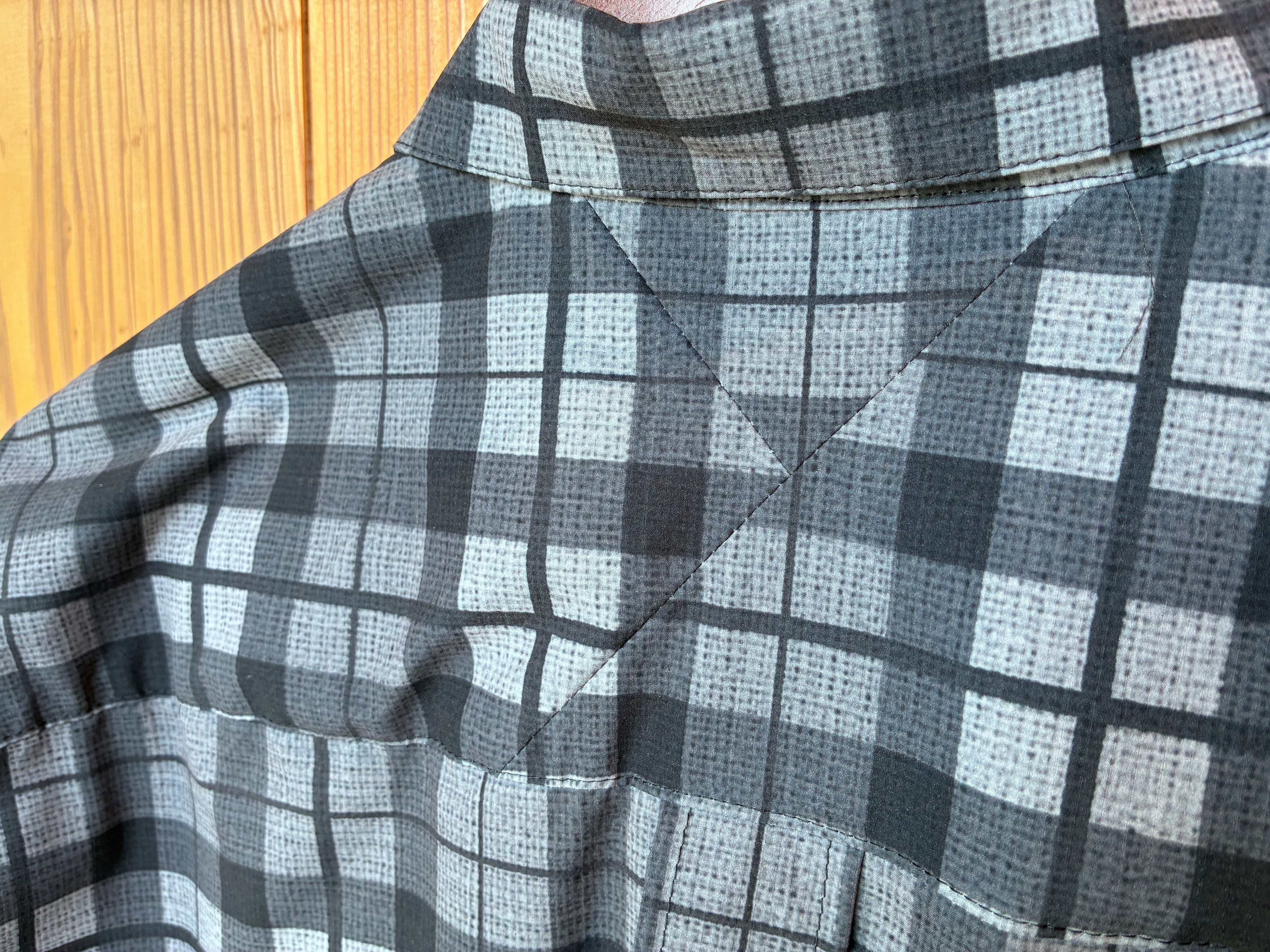 チェック柄は転写プリントで表現しています。
