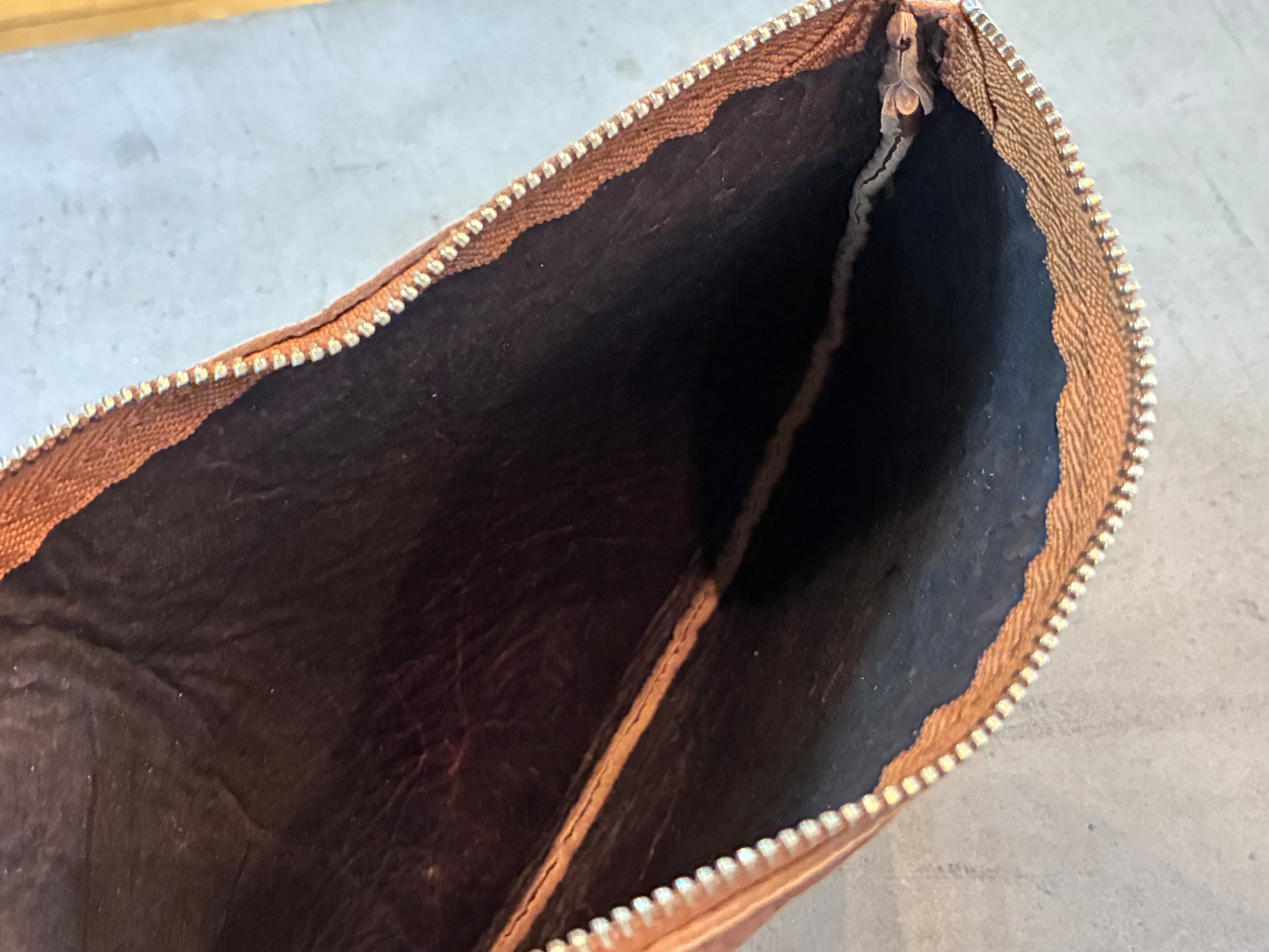 シンプルがゆえに何にでも使えるレザーポーチ。