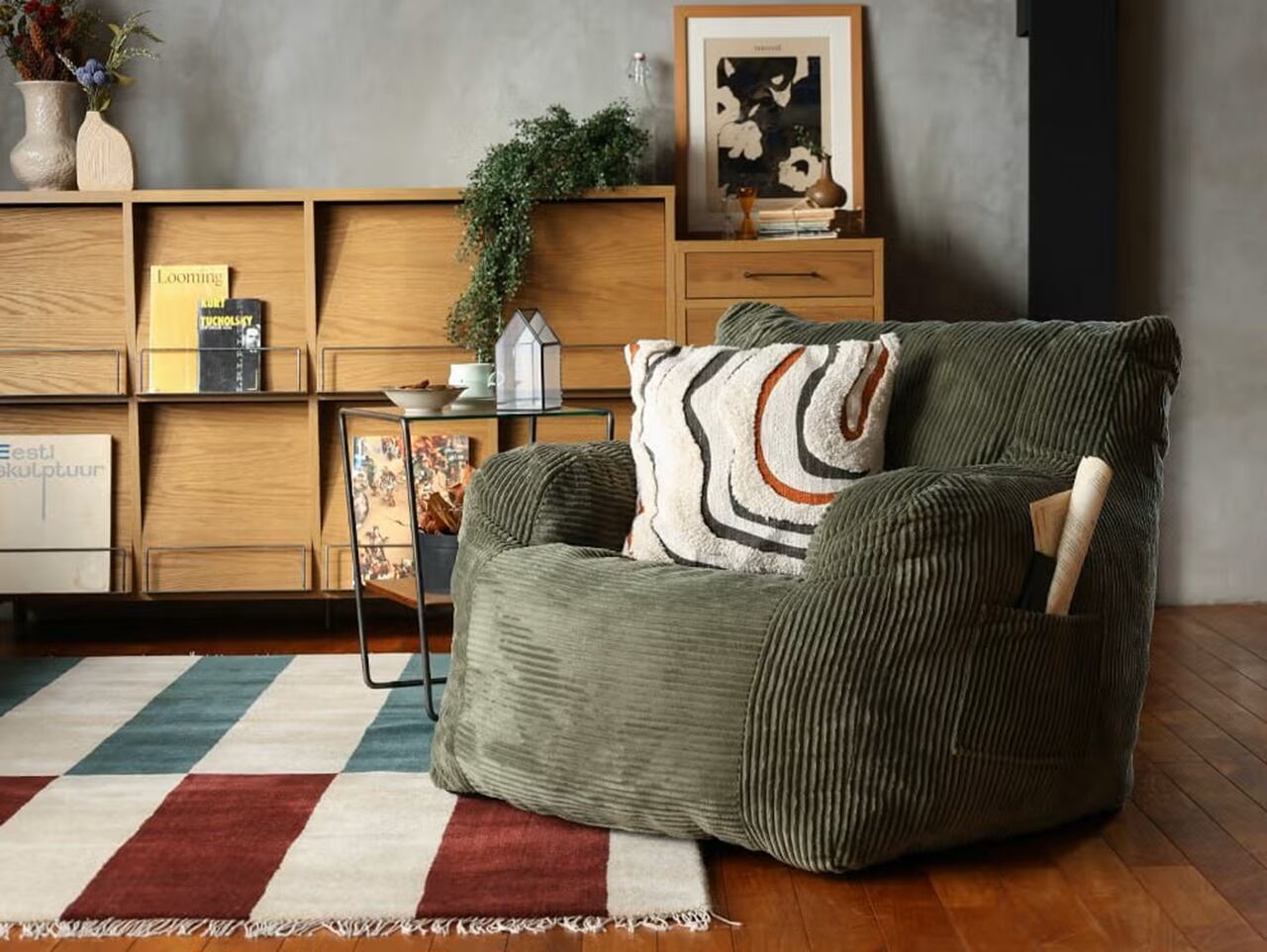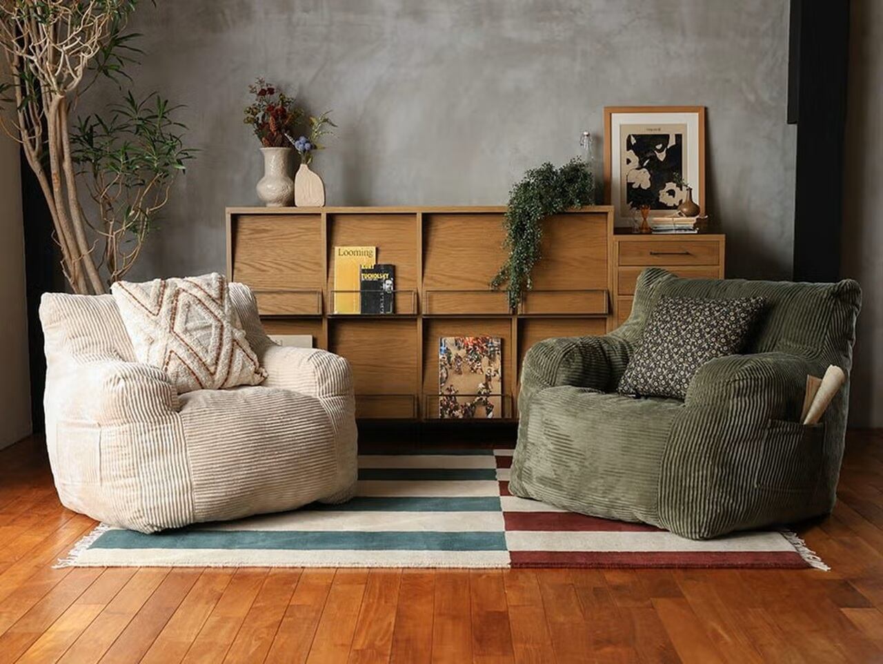 太めの立体感があるコーデュロイ生地が、おしゃれな空気感にしてくれ、アパレルショップにいる様な気分を感じながら時間を過ごせます。