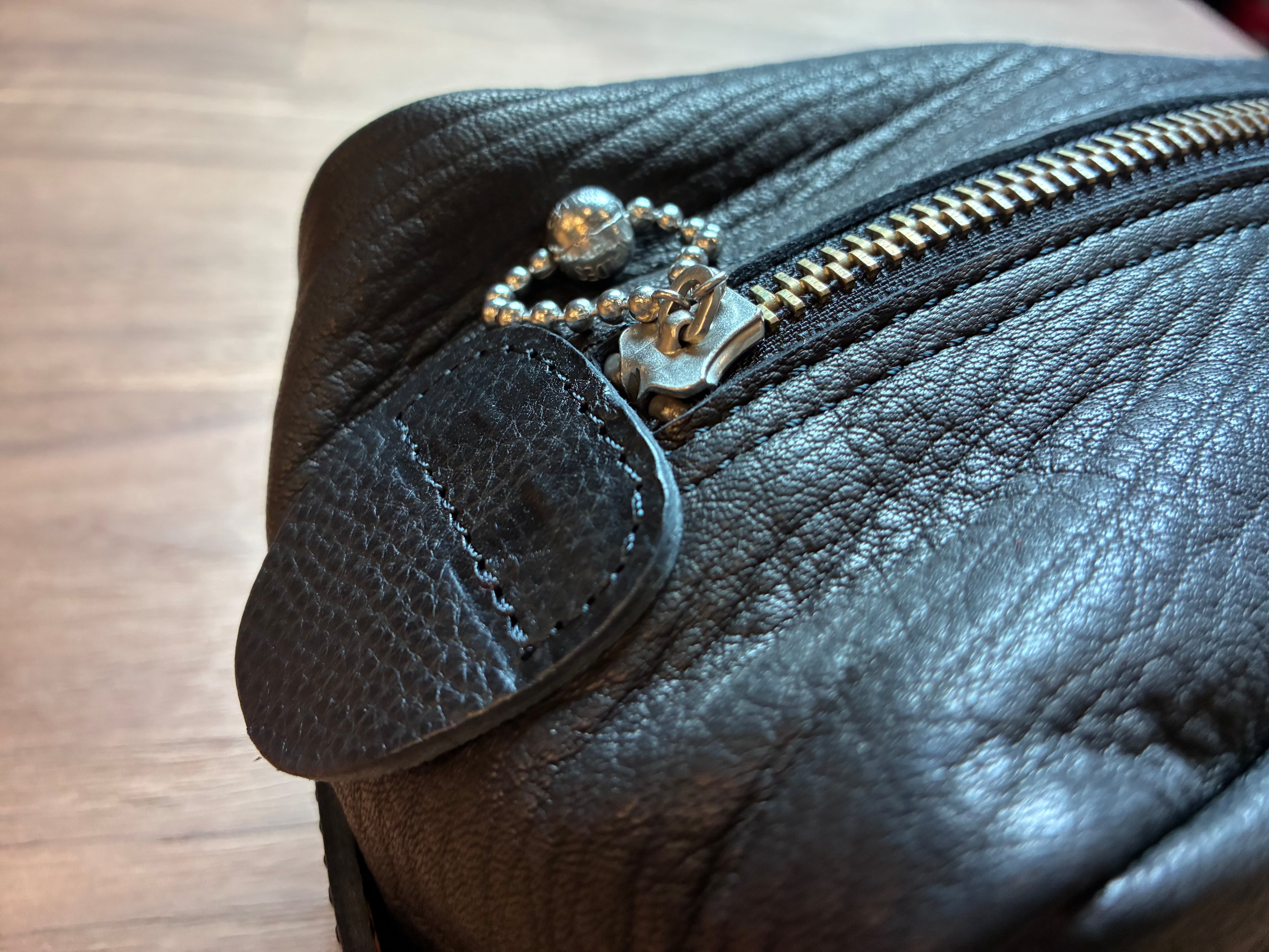 オイルを染み込ませたディアスキンを使用したキットバッグ。