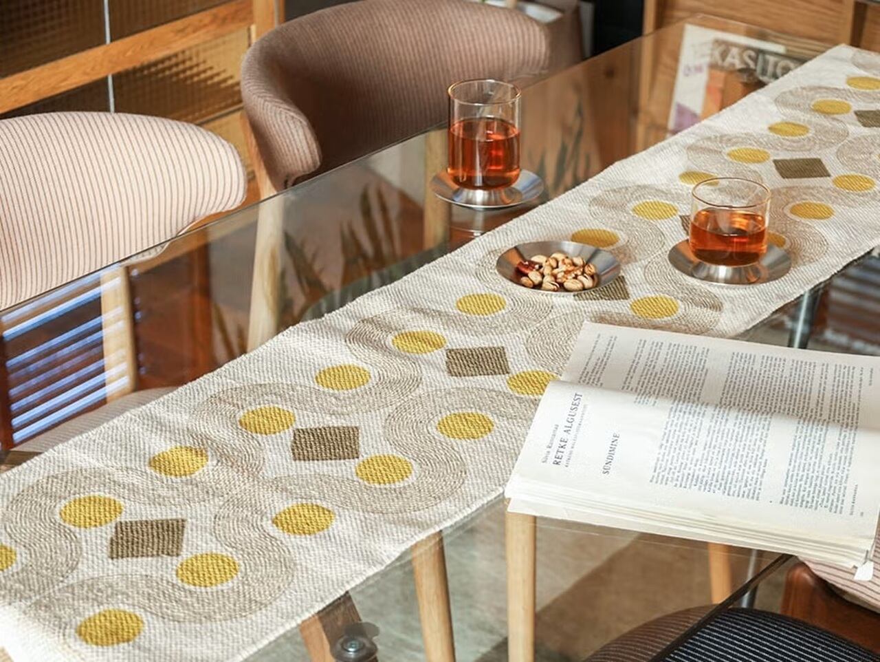 テーブルコーディネートのアクセントになるデザインが際立つテーブルランナー。