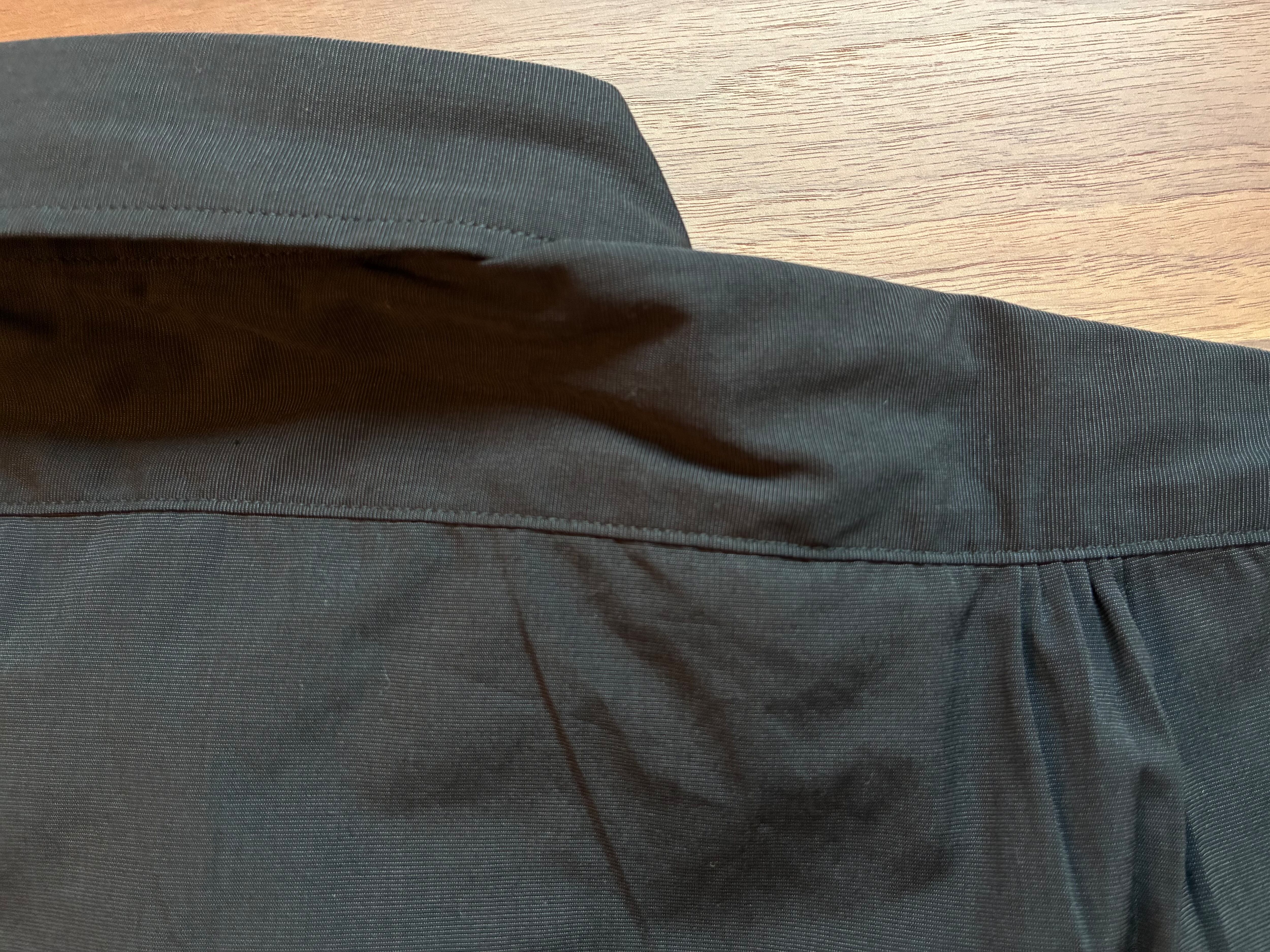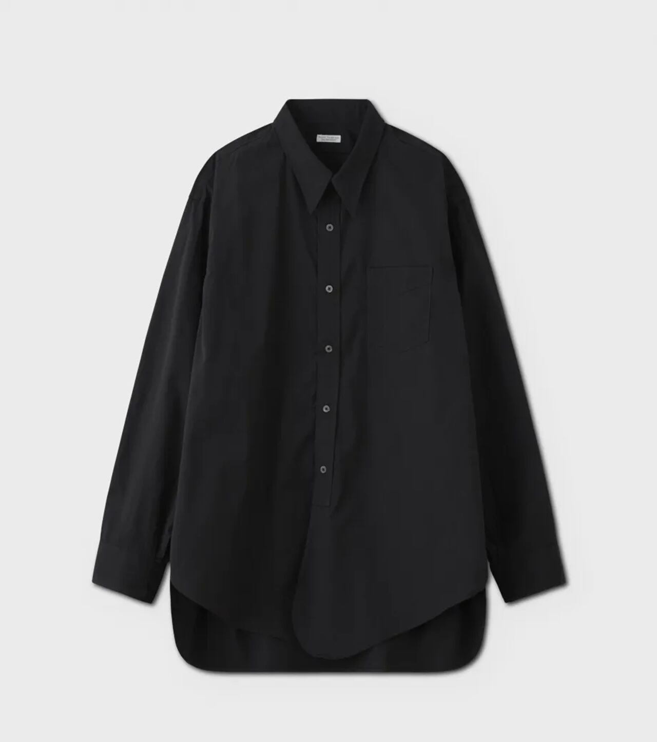 背中のプリーツタックやロングポイントの衿先等、クラシックディテールが特徴のセミロングドレスシャツになります。