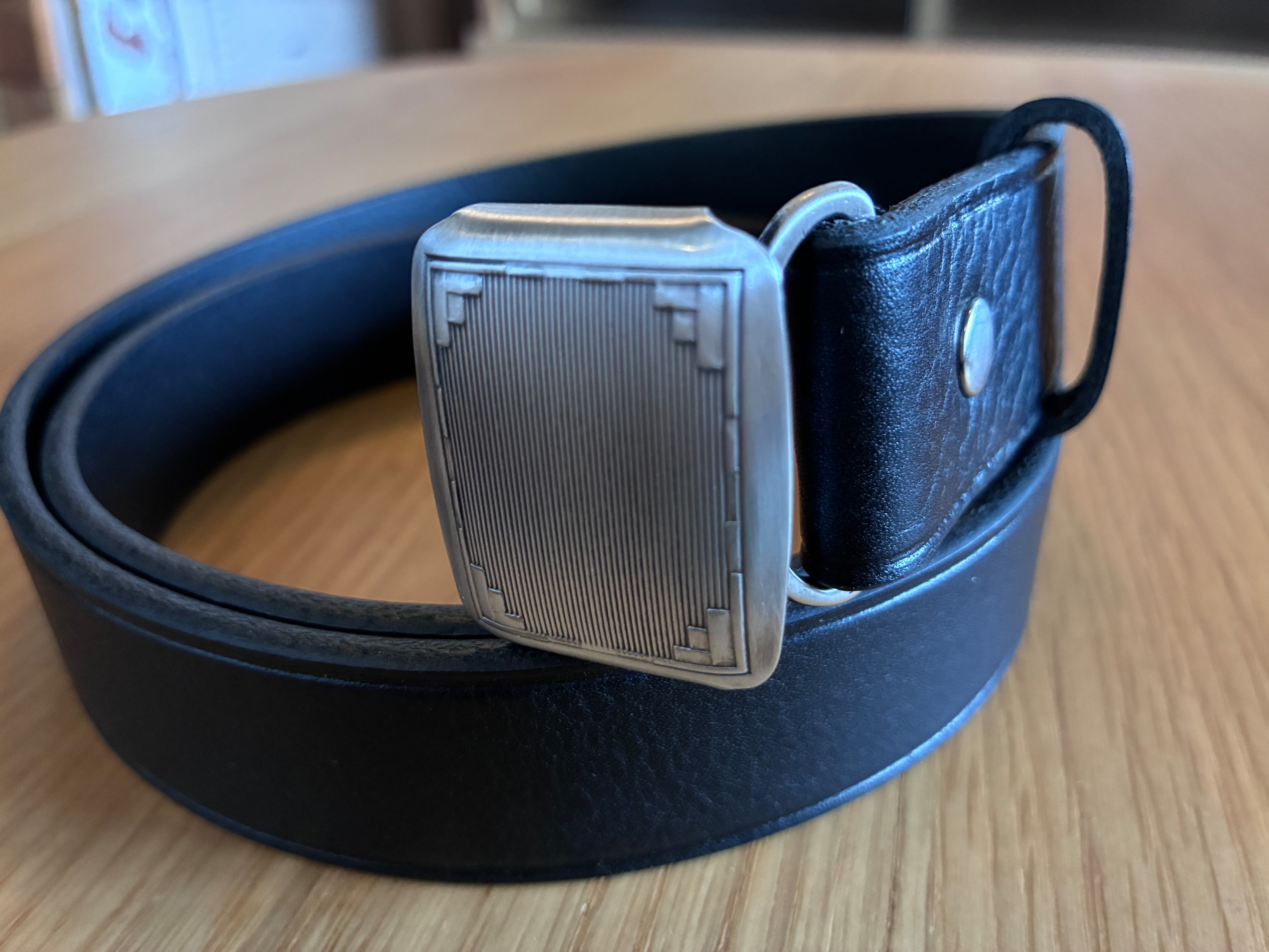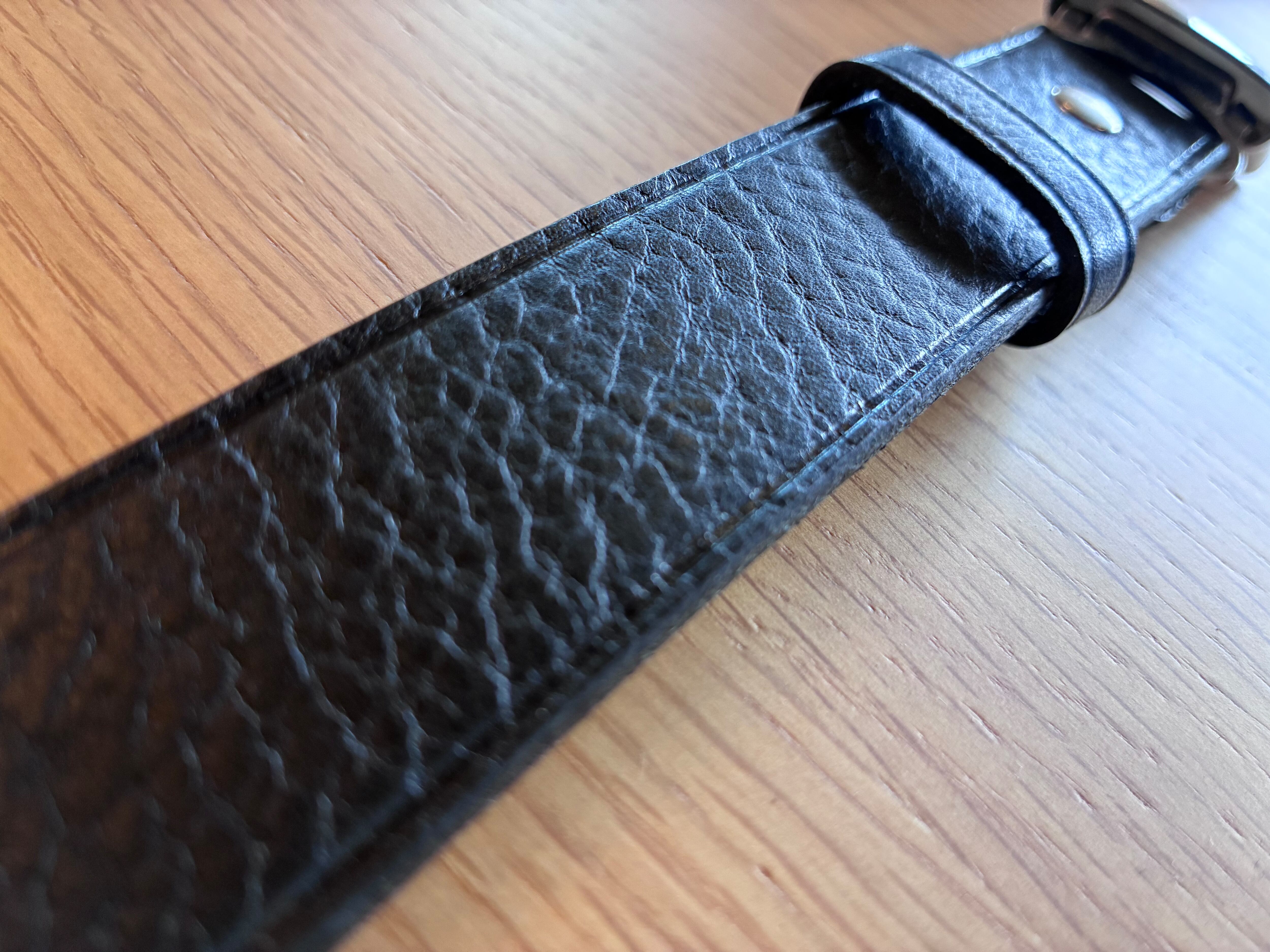 バックルにはさみ込んで留める、ホールレスタイプ。