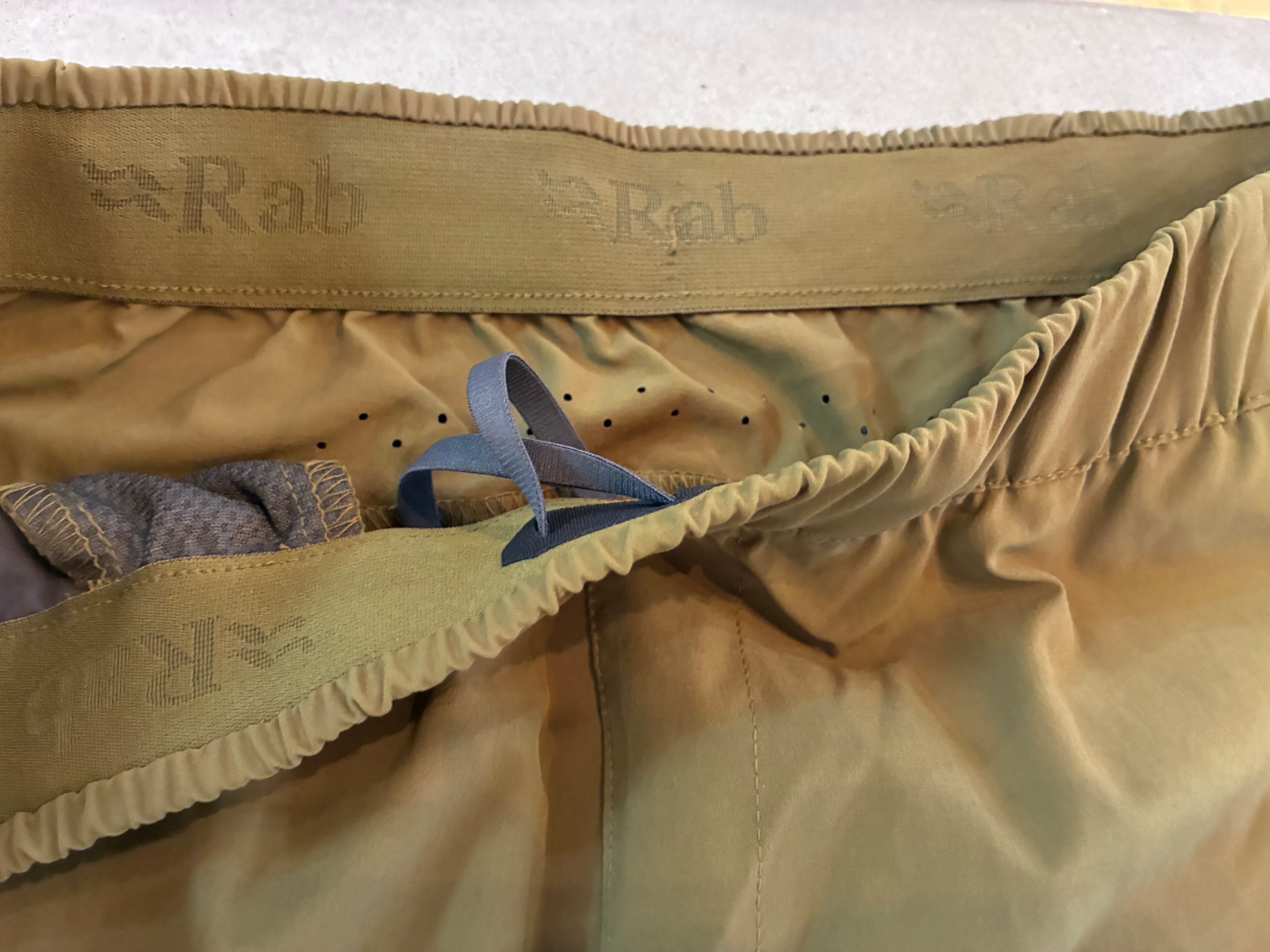 ・軽量で伸縮性のあるウエストバンドとドローコードによるフィット感の調整