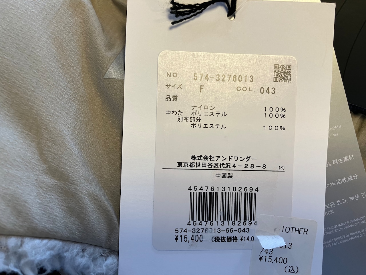ナイロン 100%(中わた)ポリエステル 100%(別布部分)ポリエステル 100%
