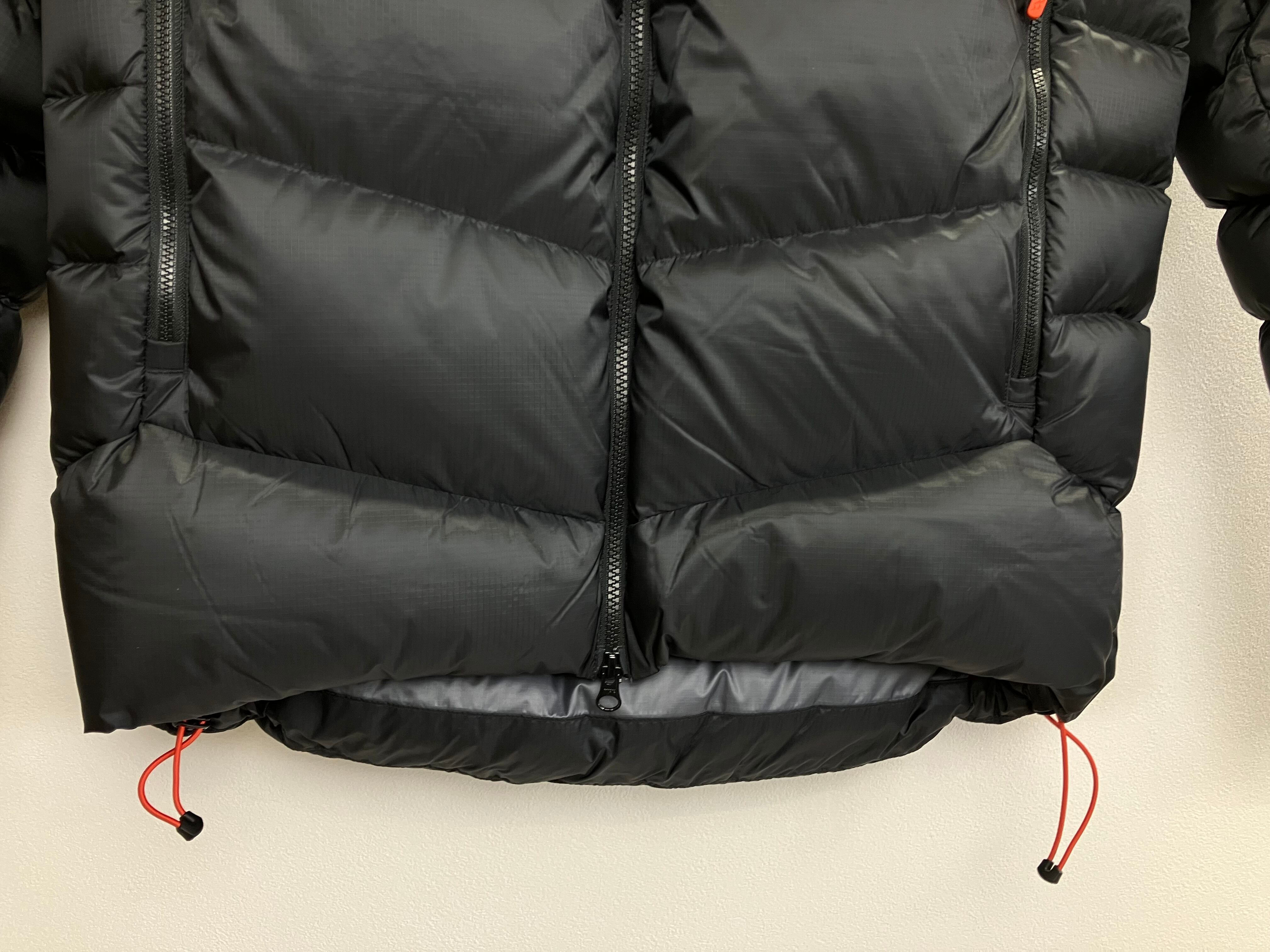 胴体、上腕、フードのボックスウォール構造により、800FP ダウンが完全にロフトし、最大限の断熱効果が得られます。