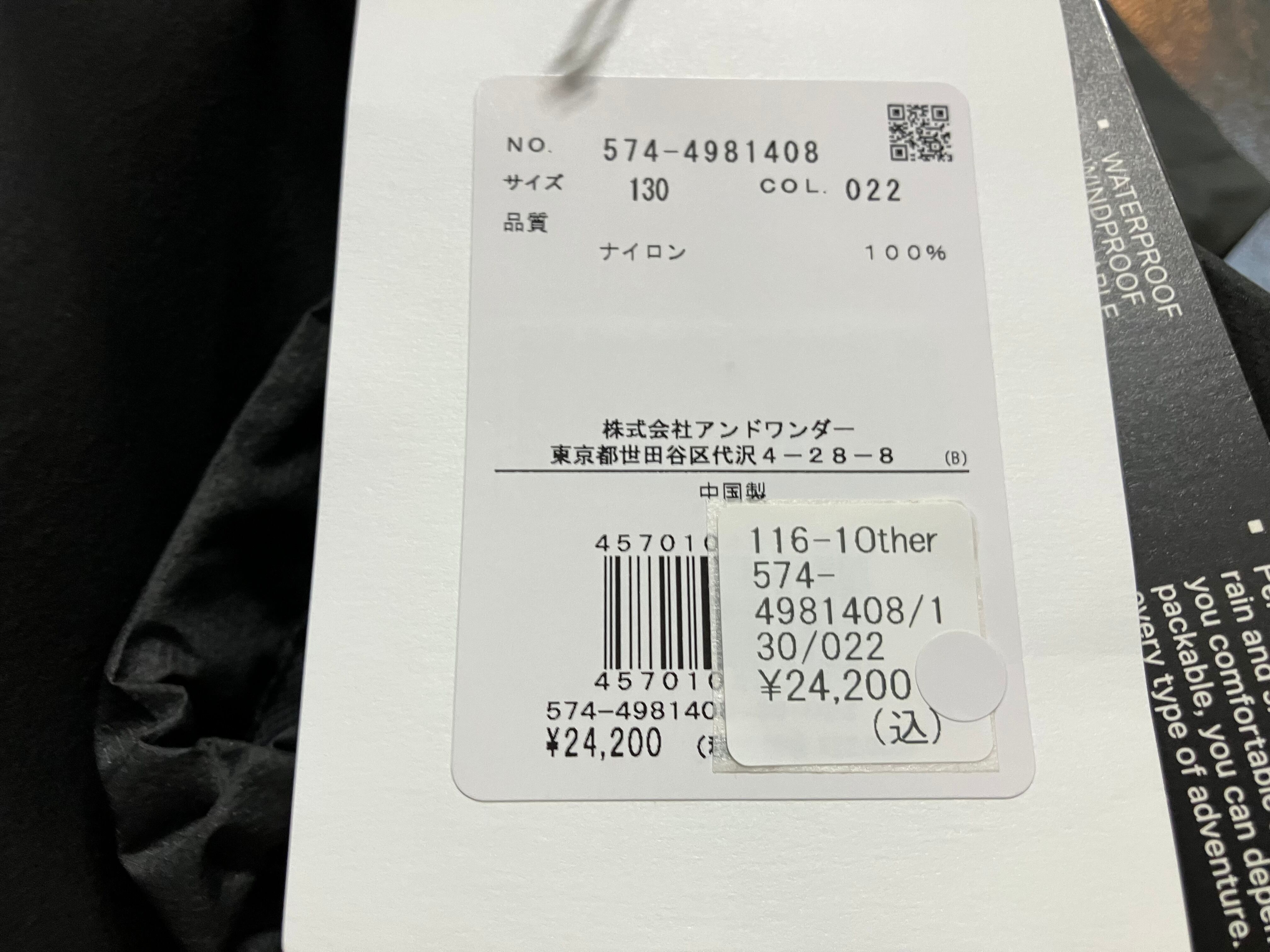 andwander / アンドワンダー / エアバギー / キッズコート / キッズアウター / ブラックキャンプ