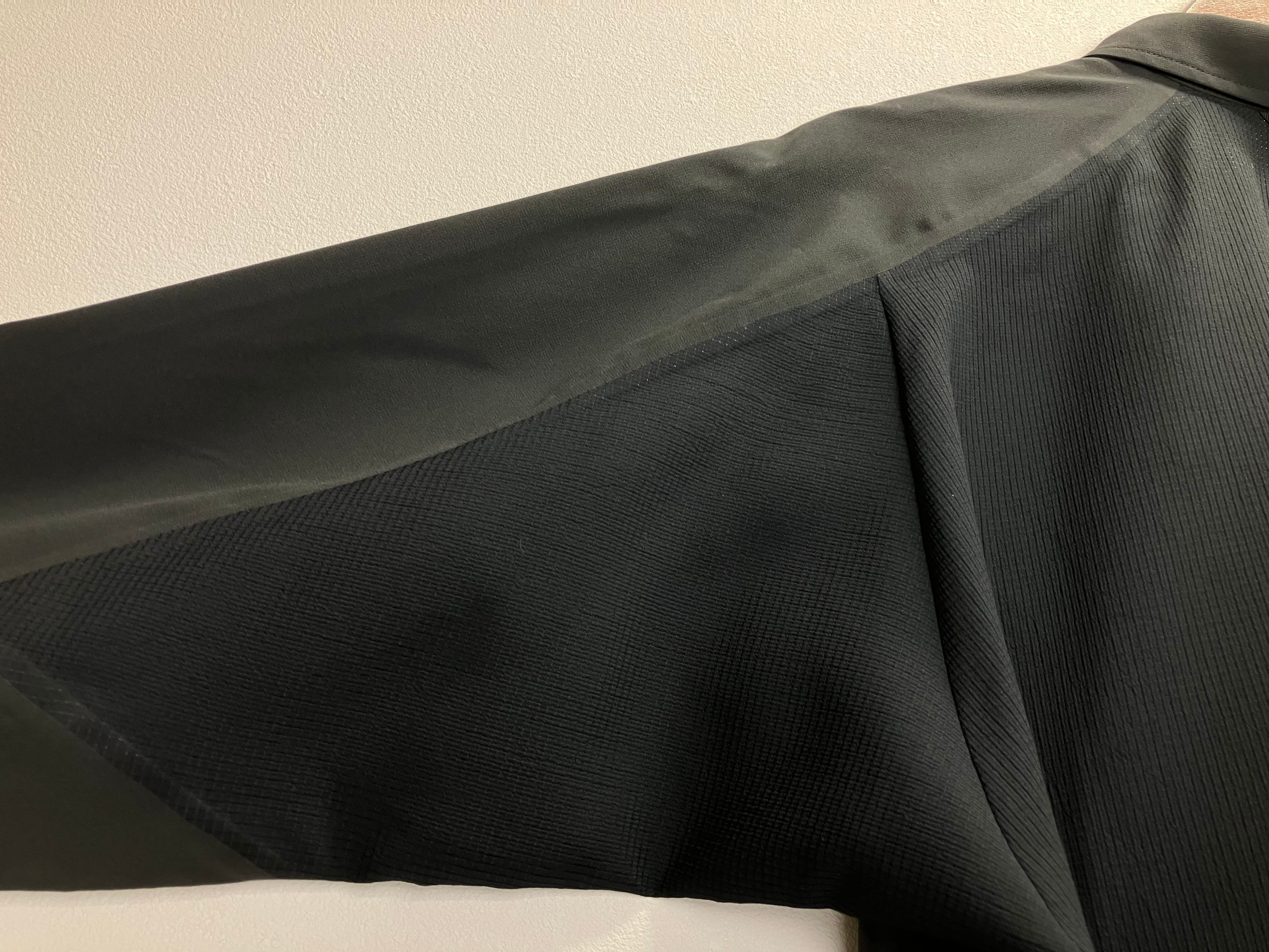 背中にはメッシュを配して、ムレや冷え返り感を少なくしています。