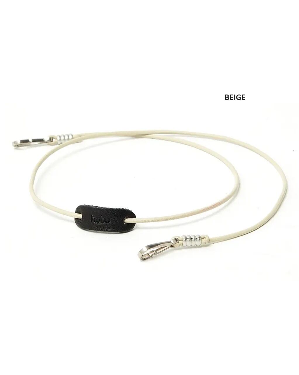 耳に下げておくよりも、レザーのコードのほうが無くすことなくスタイリッシュ。