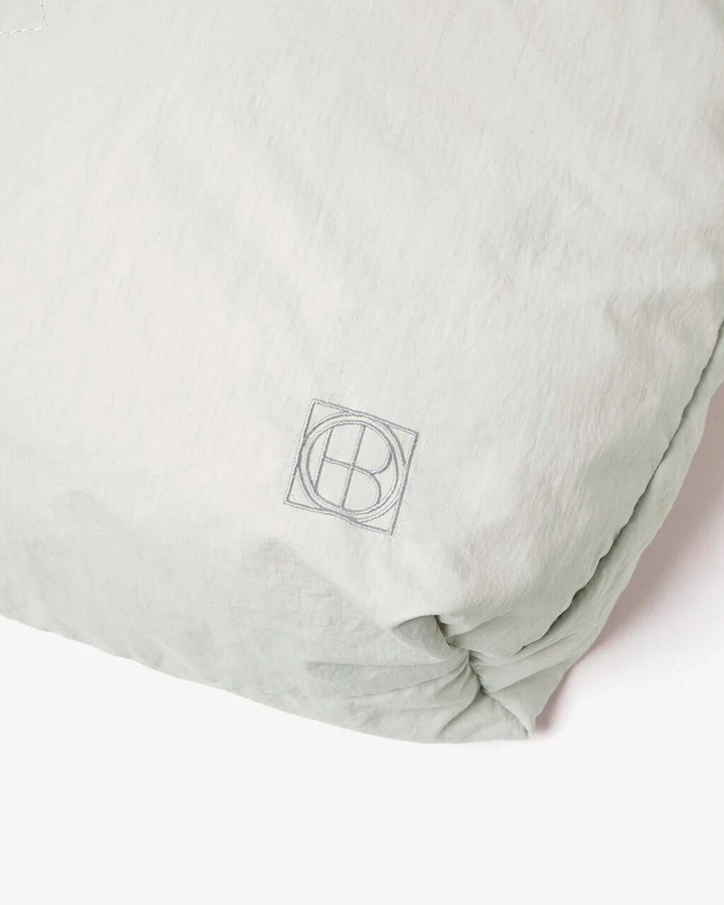 繊維廃棄物から再生されたナイロンを使用したサスティナブルなファブリックを使用しており、マットな面持ちとワッシャー加工によるリラックスした雰囲気が特徴です。